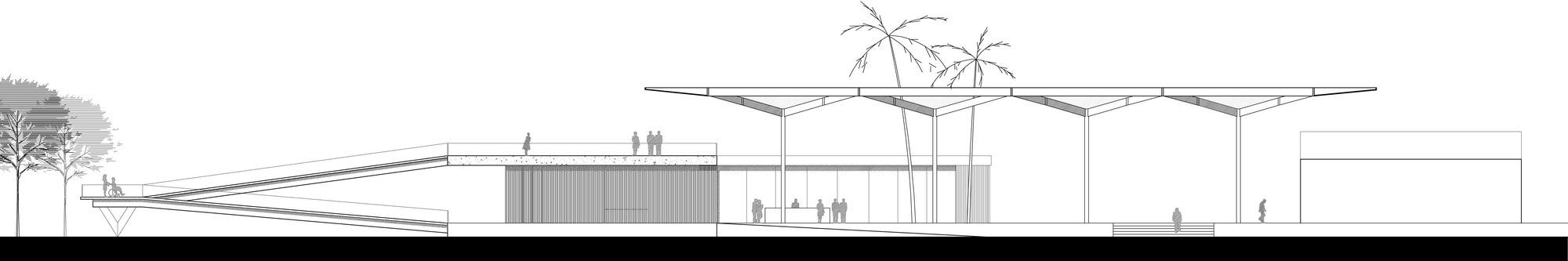 The requested program was organized into four blocks. To connect these volumes, we think of sheltering them under a single roof that draws a new smooth and natural topography, which allows both full accessibility to the interior of the building as well as its transposition towards the golf course. Its soft gaps create routes to the highest points of the roof where you can watch the matches and observe the landscape of Rio. We see in this project the opportunity to put into practice an architectonic and urbanistic standard that values and respects the environment and incorporates the sustainable means available for the construction and life of the building, where architecture is an interpretation of the landscape not only in the formal aspect.
