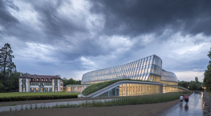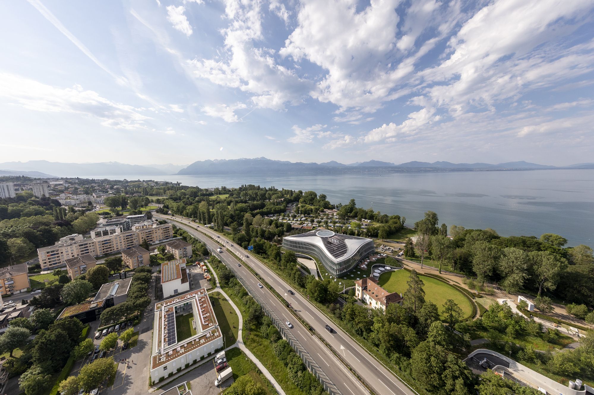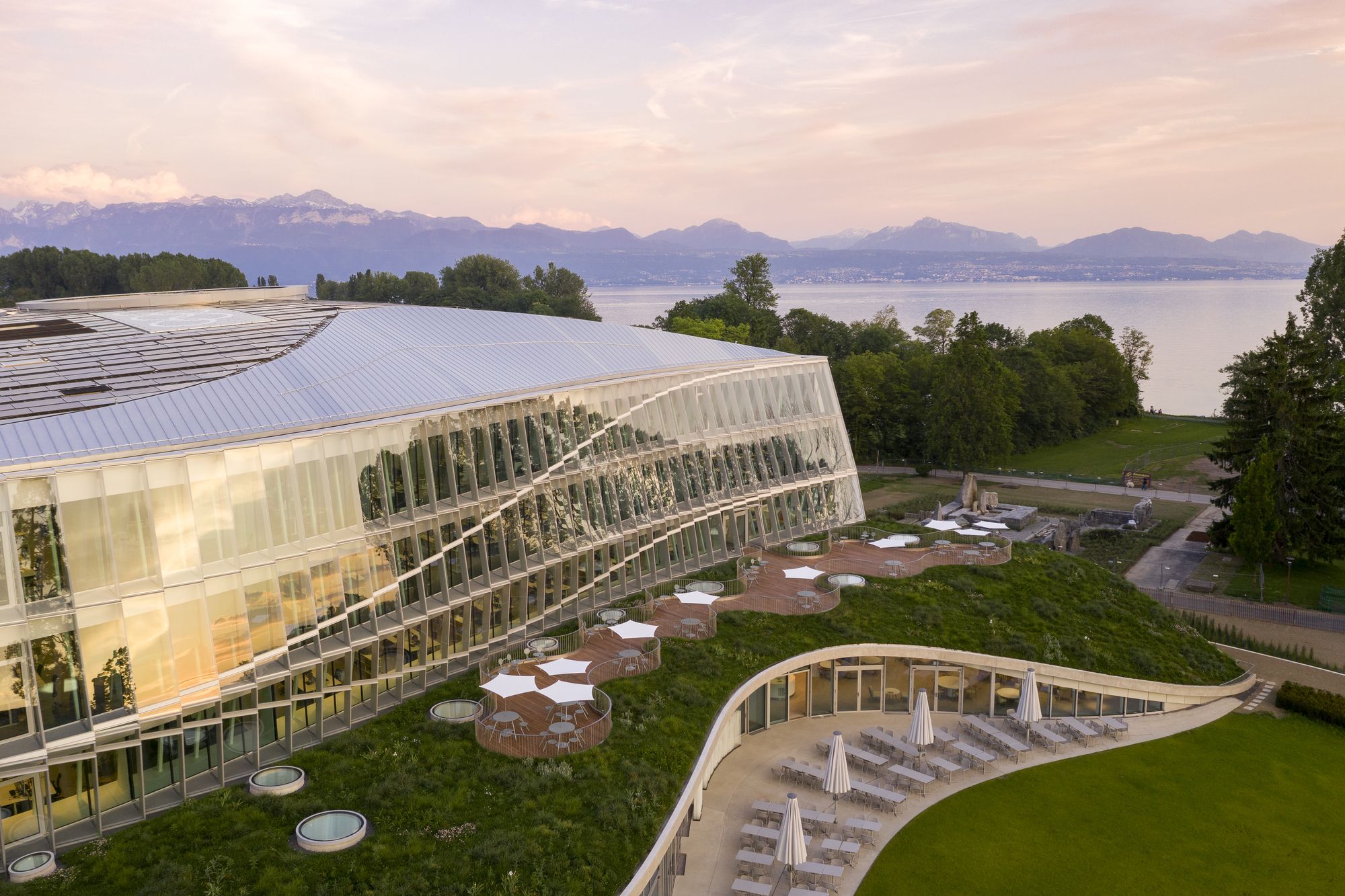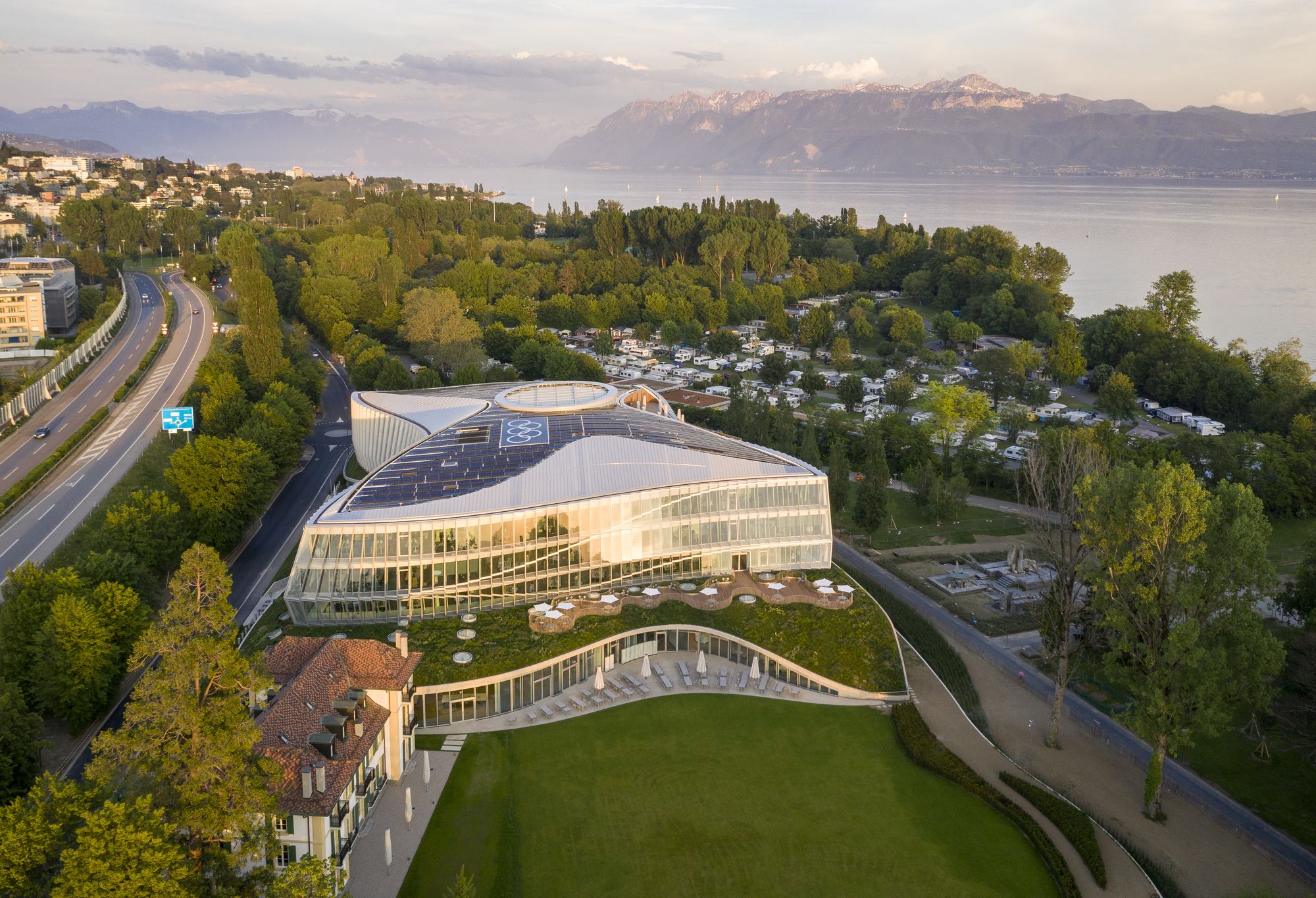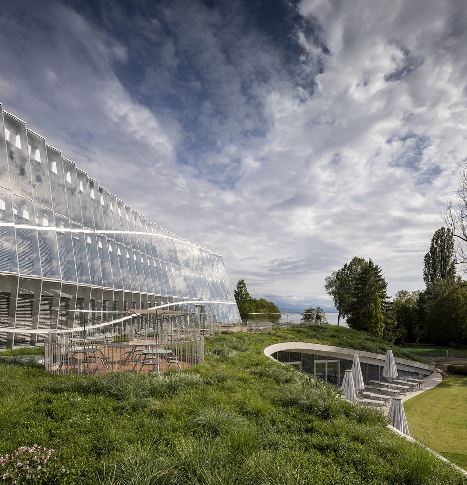 Incorporating the historic setting of the park, home to the eighteenth-century castle LeChâteau de Vidy, was a crucial aspect of the project. Located inside a public space that welcomes a diverse group of visitors, Olympic House becomes an emblematic architectural landmark for the local community, exemplifying accessibility and transparency. The shores of Lake Geneva are a protected area, and therefore 3XN, working with the IOC, approached the project with the intent to achieve the highest level of integration within the surrounding environment. The neighboring Château de Vidy, a building included in the Canton de Vaud’s architectural census, has been renovated, with the original facades restored to their original condition.