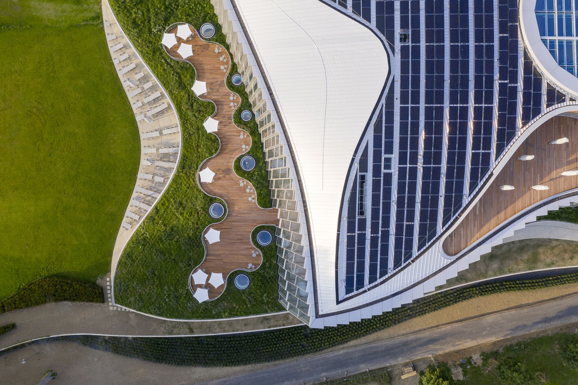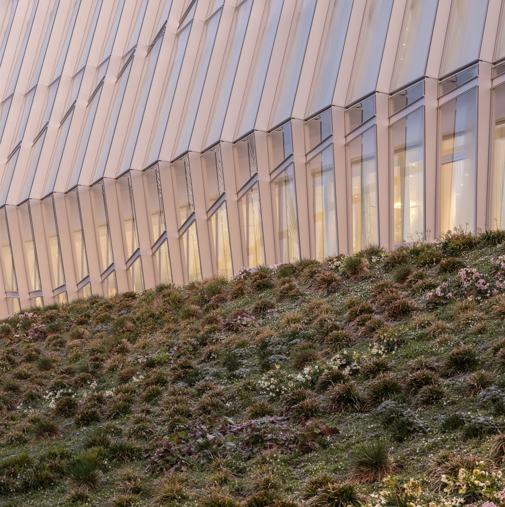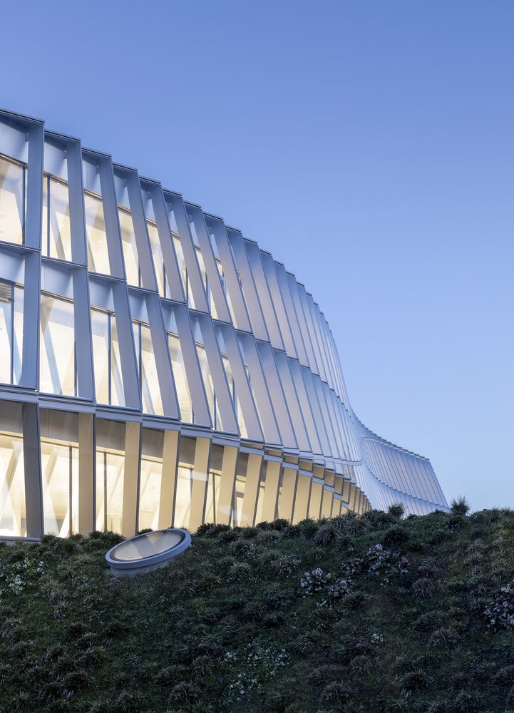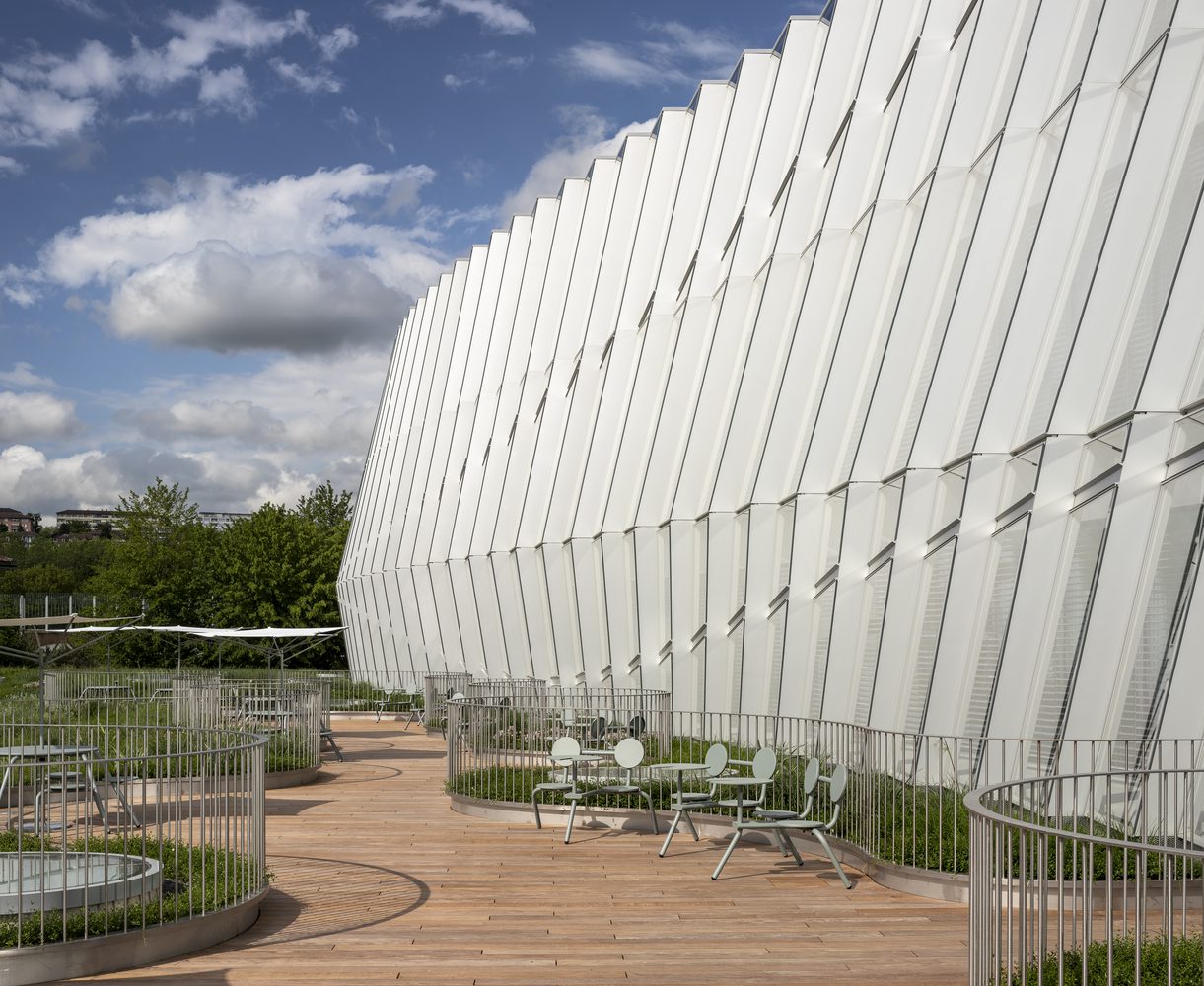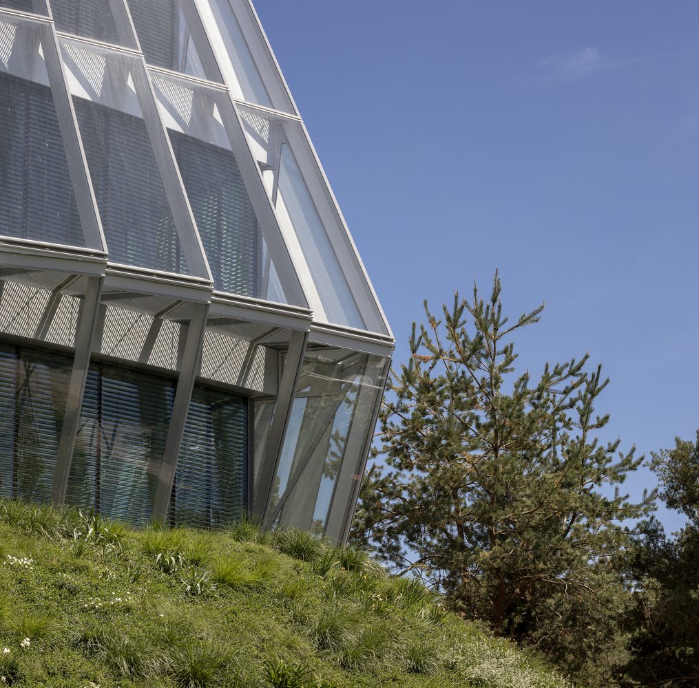 The resultant design respects both the Château’s legacy and the park setting, establishing seamless transitions between the green public space and Olympic House. The positioning of the Headquarters on the east side, combined with the dense grove of trees to the west, results in a reinterpretation of classical symmetry using the Château as the central axis. By consolidating the functions of the current Olympic House and Pavilion, the new headquarters and surrounding landscape provide the same amount of green space on the campus, while more than doubling the square meters of the building. The design incorporates nature and landscape to maximize the beauty of the location, using plant elements of different scales to create paths and viewpoints, while ensuring the preservation of the local biodiversity. A vegetated plinth discreetly blends in with the landscape, minimizing the impact of the building’s footprint.