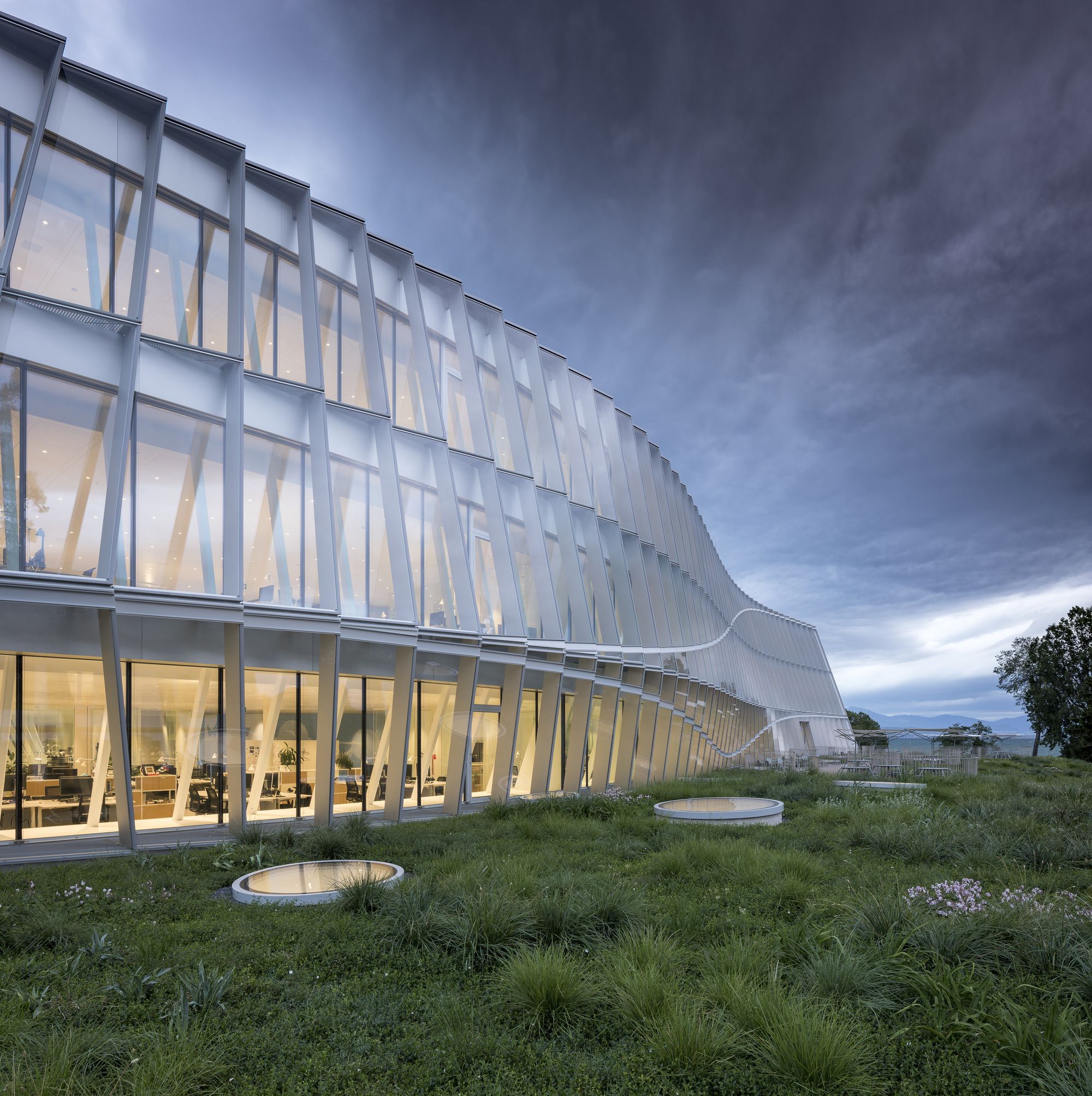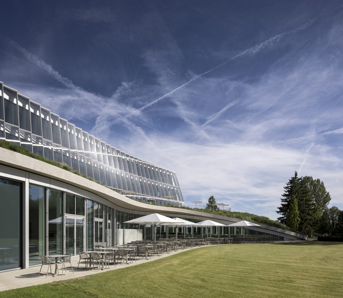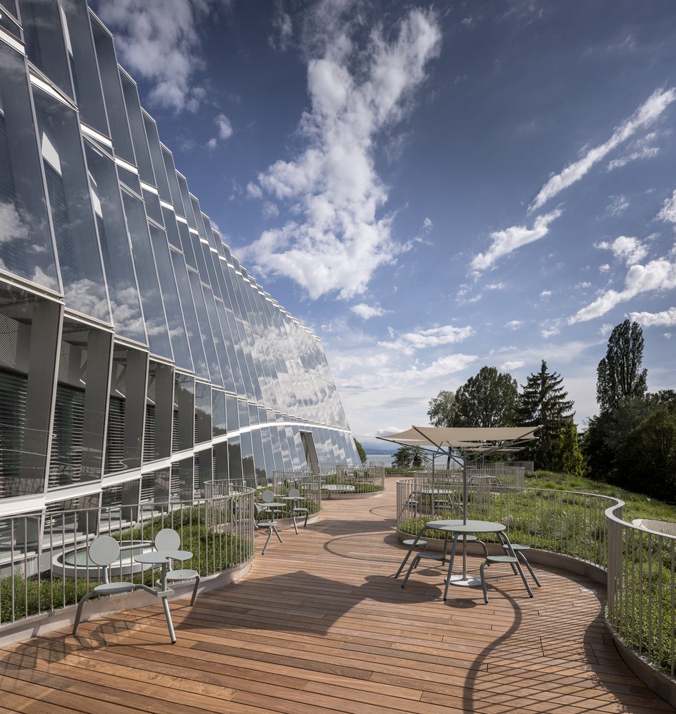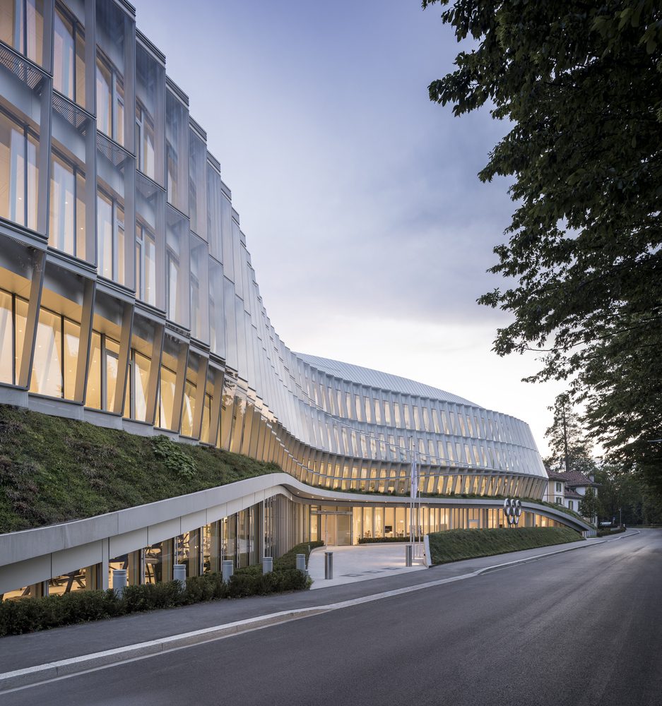 The building’s transparency symbolizes the openness of the IOC as an organization and provides stunning views of the lake beyond. This floor-to-ceiling, fully glazed façade brings daylight deep into the building while optimizing thermal insulation with a double-skin system. This indentation of the façade allows the park to flow deeper into the office space. The glass construction becomes a metaphor for the IOC’s desire for organizational transparency, reflecting the overall structural changes initiated by the Olympic Agenda 2020. The design allows the daily work and movements of the IOC staff to be visible through the façade.