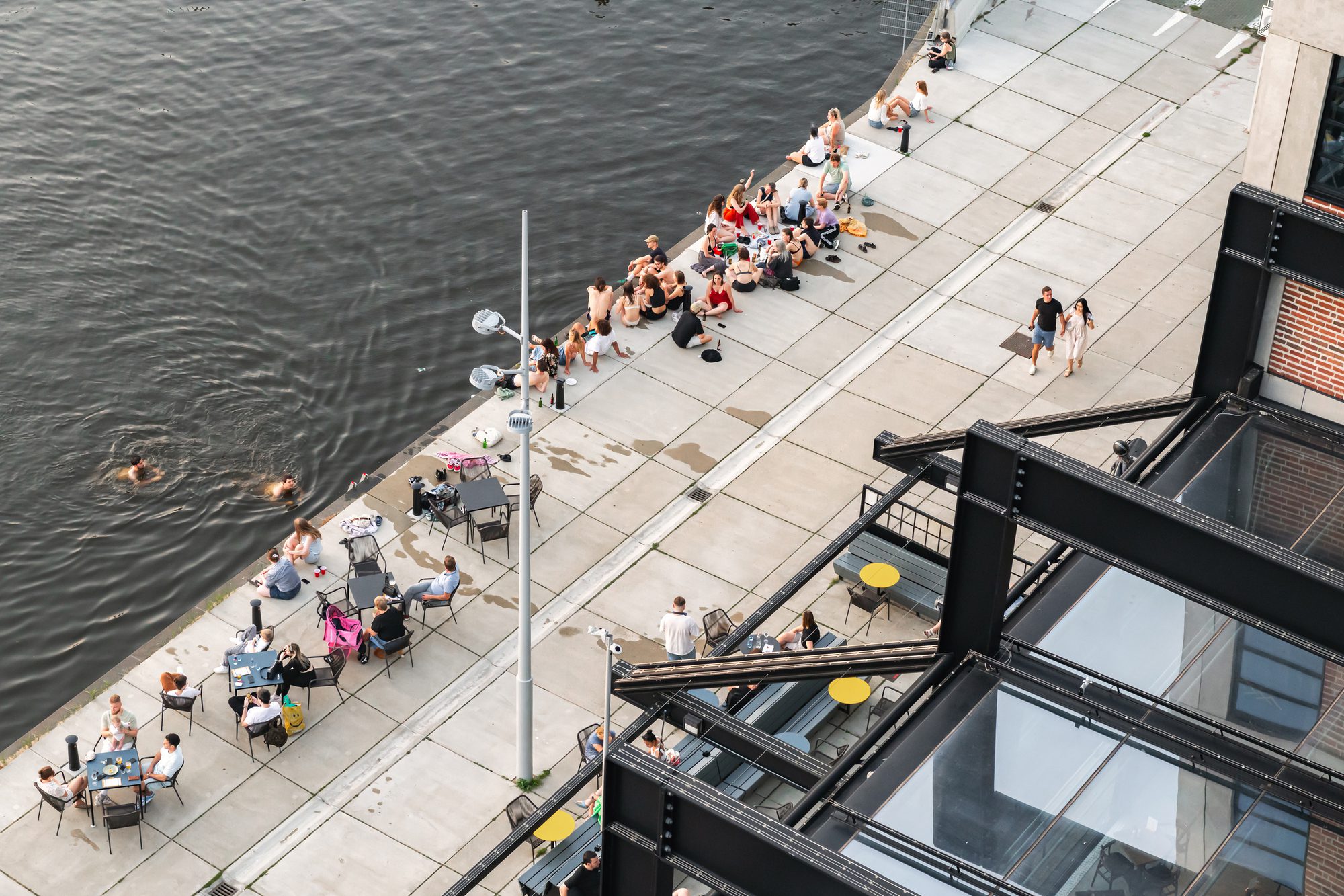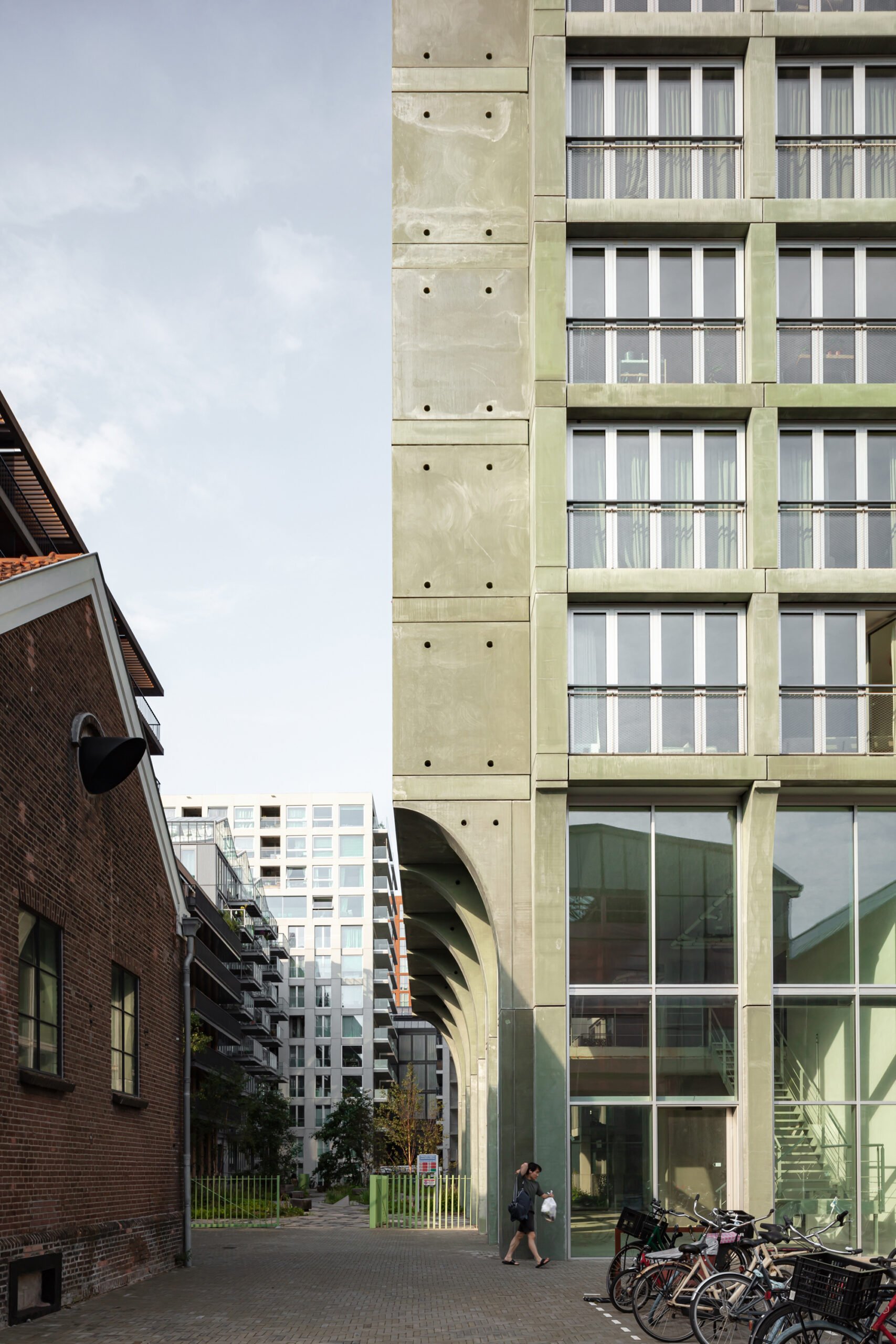 Leaving many entrances and stairwells open has created numerous informal connections between the courtyards and public streets, complementing the formal passages. Along with the area’s nearly car-free layout, this design fosters the social interaction among residents, businesses, and visitors, creating a lively district in the new Oostenburg.
