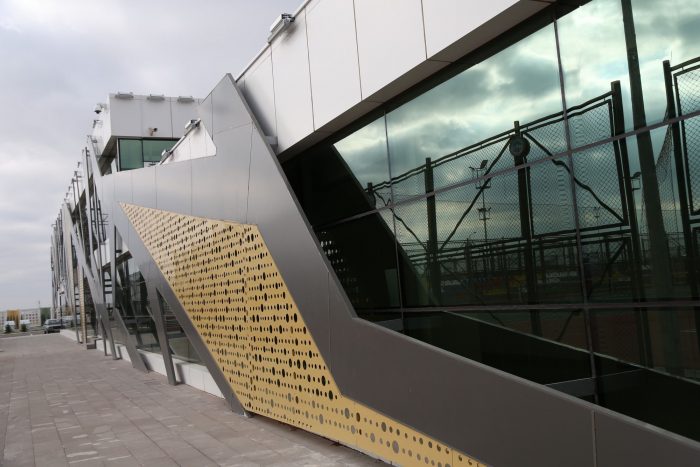 Inspired by the branches of a tree reaching out towards the sun, the facade of the building gives a feeling of positivity and growth to the sportspersons. Clad with glass on all edges, the building looks outwards while at the same time provides an unhindered view inside and presents a great balance between what’s open and enclosed. The only enclosed space in the entire building are the locker rooms and a few offices which form the main core of the building.