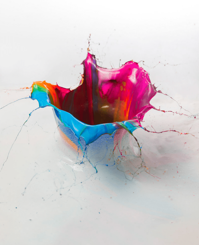 This moment lasts for only a fraction of a second before everything settles down again but for sure it’s a moment worth to capture!The pictures taken are captioned with captions like “capturing the ephemeral moment in time” or “vibrantly colored Chroma creates the ‘orchid’ shape” or ” the colored paint is modeled by gravity”. All of these are sentences describing the interesting phenomena that create beautiful art. The art of gravity.