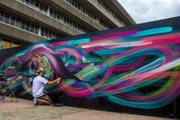 He has the ability to give a spatial quality with sparing colors creating artistic walls in the space that leaves a great impact on the people. Street art always express feelings and convey messages through visual experience. It adds meaning to the space giving it a fourth emotional dimension. The colors with the line language both add to the space.