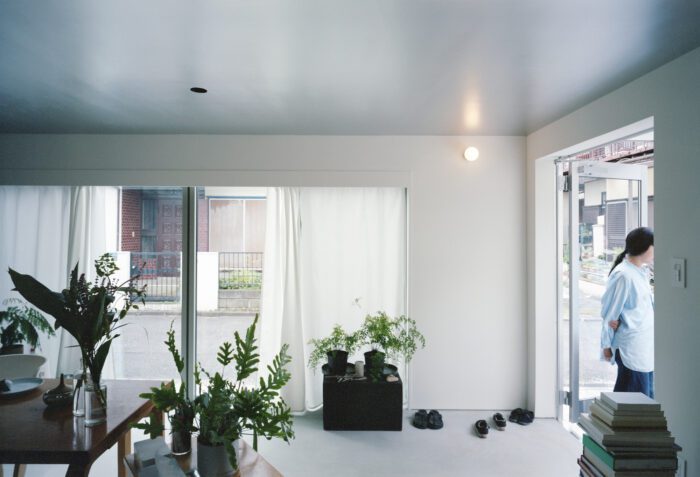 Overlap House, In this house, spaces are not divided by walls according to function. Instead, overlapping boundaries generate an expanse that reaches beyond the ordinary. The simple plan, evenly divided into four, may at first appear to be a series of identical rooms lined up like a single studio unit. Yet in reality, the connections between rooms and the placement of openings prevent a complete view of the whole.