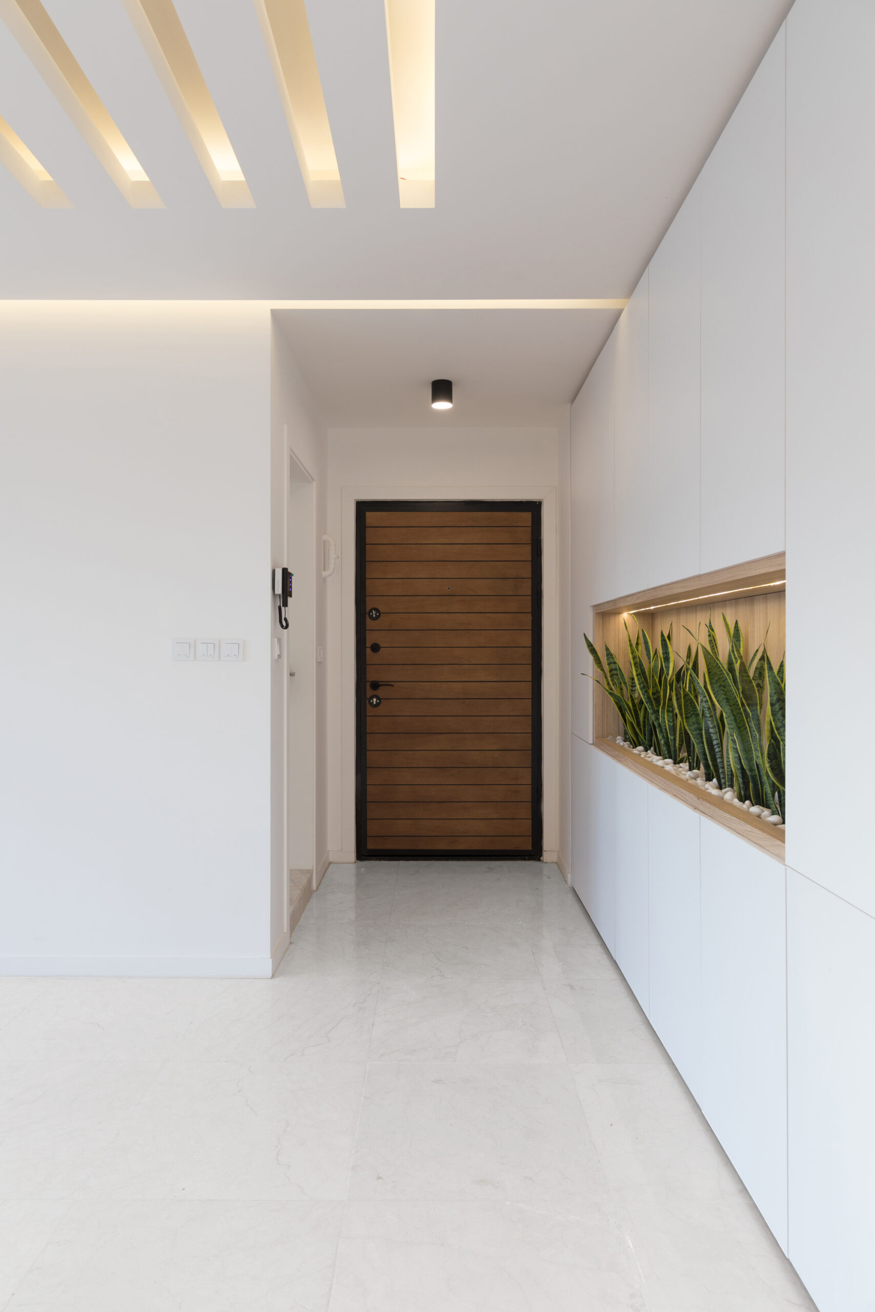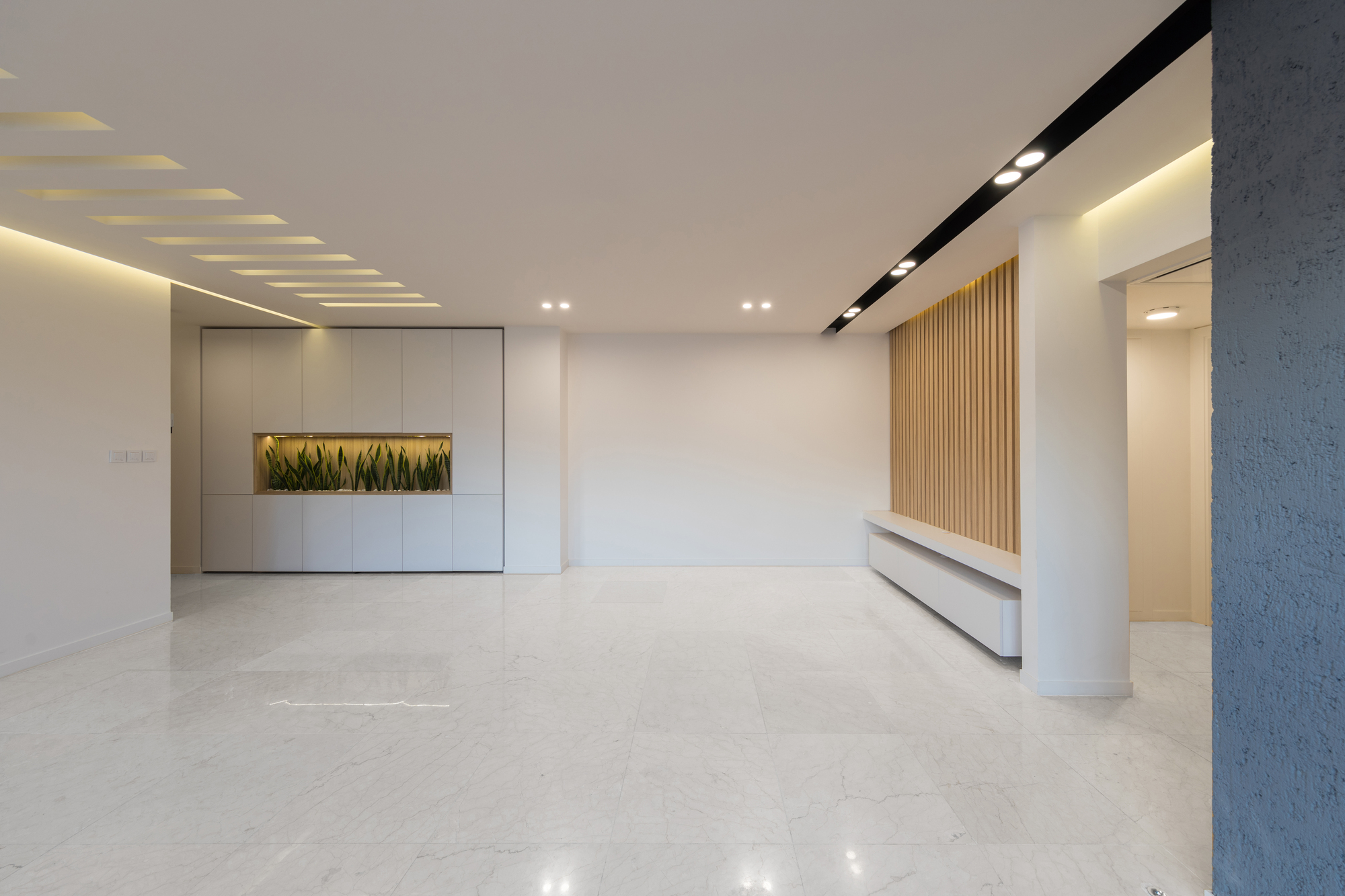 Rigid forms with minimal openings will start from the location of the bedrooms (private spaces) and as it moves towards the more general areas of the house (living room and kitchen), the rigid parts will decrease and finally there is the open space (balcony). The cube ‘s material is white stone, and the dark surfaces between them are profiles. For these profiles, the car color is used due to its resistance to weather conditions, such simple and unambiguous characteristics give perception to the mind and will make the living space readable.