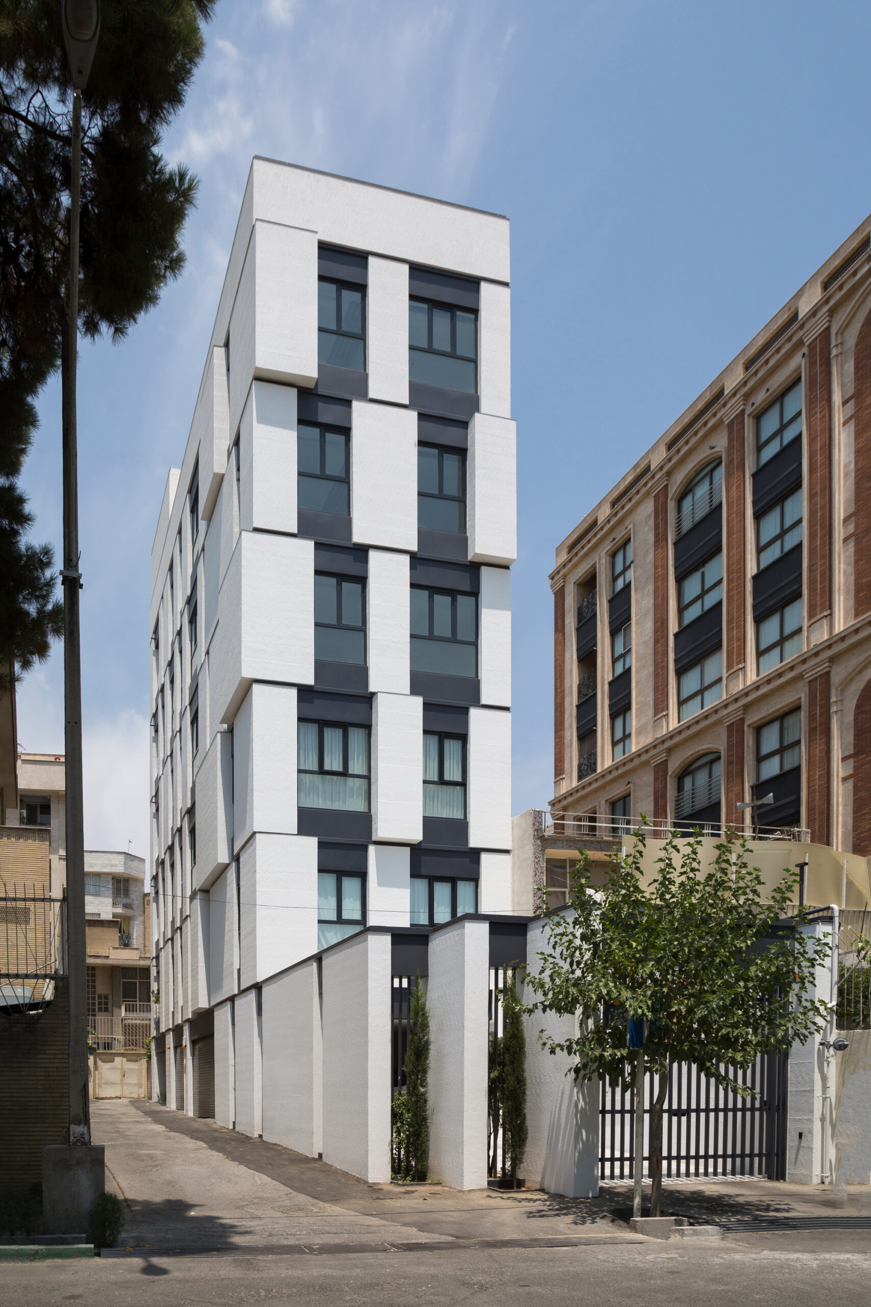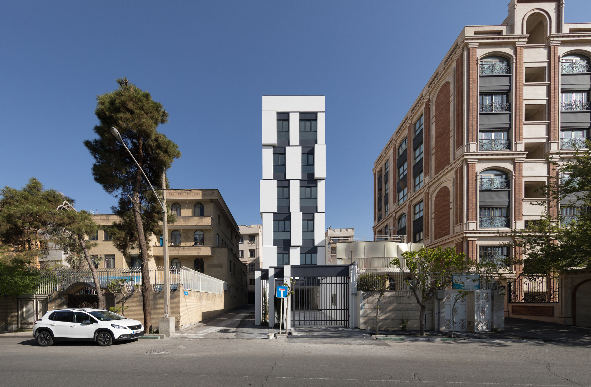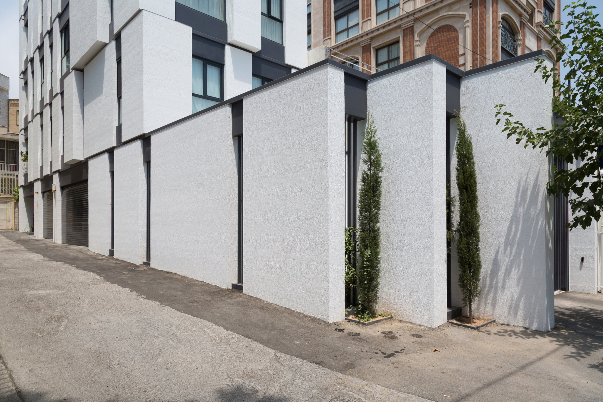 Every project in architecture faces challenges that achieving the answer will create a specific scenario for that building. One of the features of Paeiz 5 Building site is its small width, which made limitations in interior design (plan) and exterior (facade). On the other hand, its 2 corners allow better lighting for the building. The project is located in Amirabad neighborhood of Tehran; the entrance is from the southern and western sides. This complex has been developed in 5 floors.