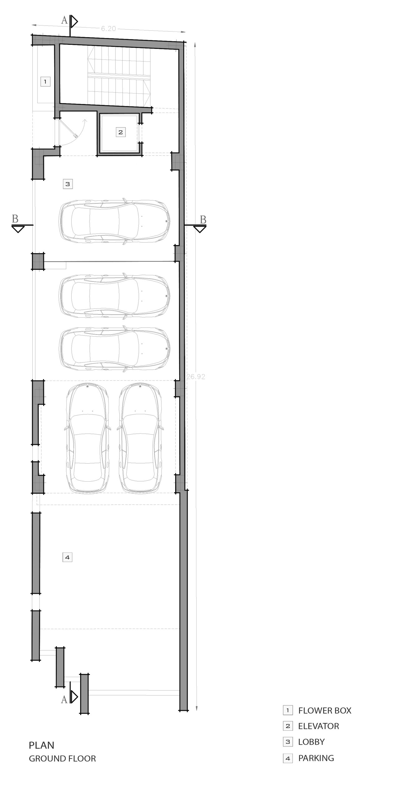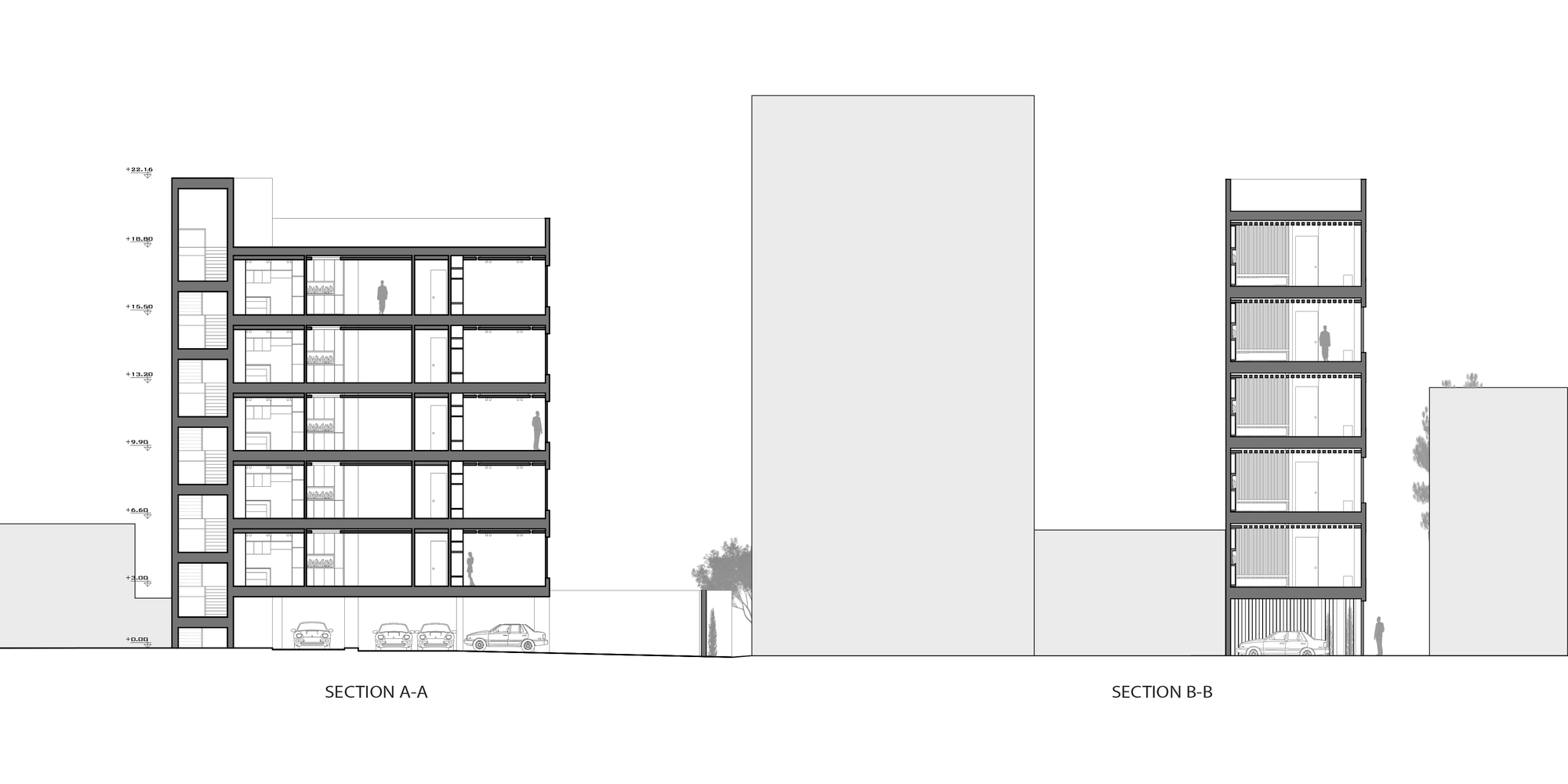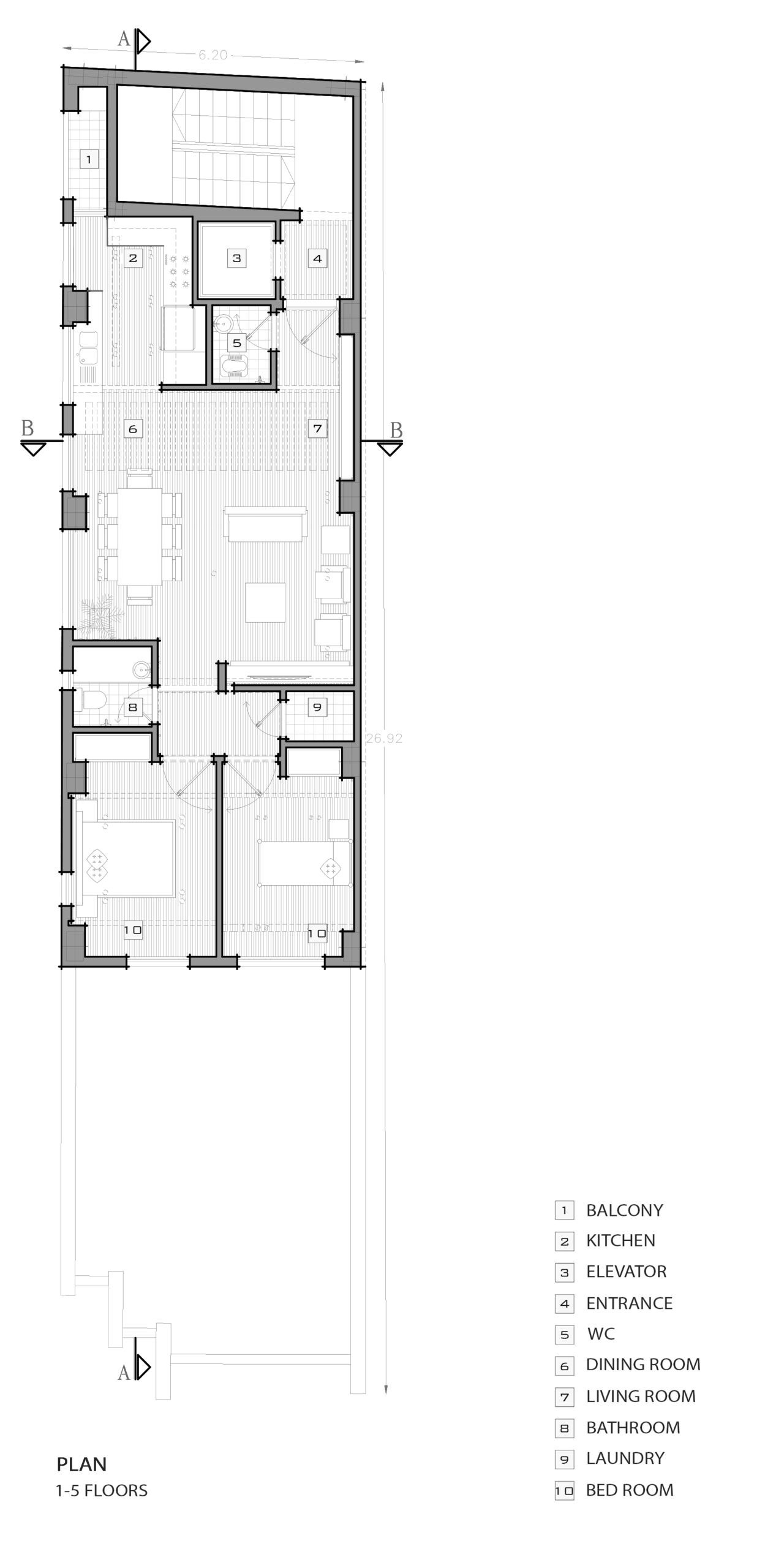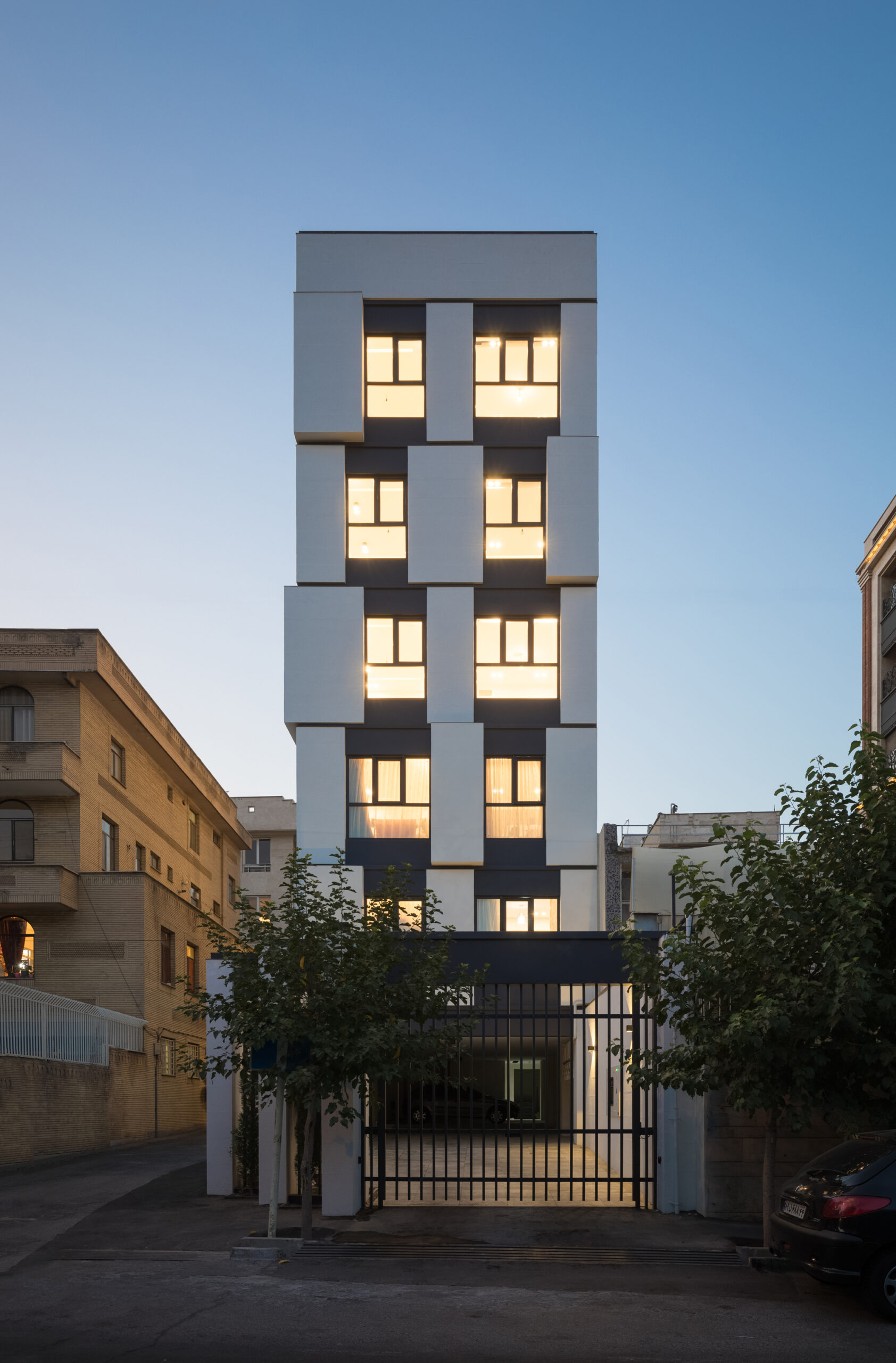 Every project in architecture faces challenges that achieving the answer will create a specific scenario for that building. One of the features of Paeiz 5 Building site is its small width, which made limitations in interior design (plan) and exterior (facade). On the other hand, its 2 corners allow better lighting for the building. The project is located in Amirabad neighborhood of Tehran; the entrance is from the southern and western sides. This complex has been developed in 5 floors.