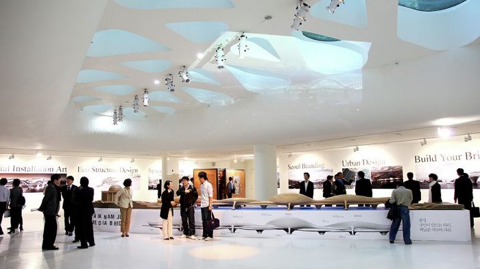 Thus, perhaps in the future, bridges will not only bridge between grounds, but themselves become a sort of new ground. Rather than putting a green roof on top of a building to replace the grass used up by the footprint, bridges such as the Paik Nam June Media Bridge will provide green where there previously wasn’t even the opportunity.