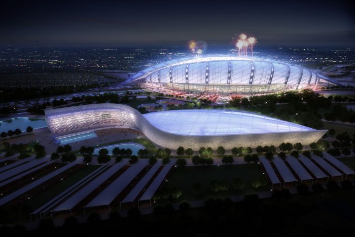 The proposal features a stadium, an aquatic centre, a sports hall, residences for the athletes and a hotel.
