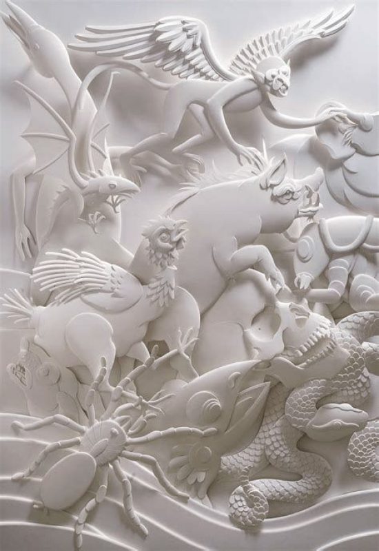 Another impressive paper work, this time by LA-based artist Jeff Nishinaka, who is the world’s premier paper sculptor with a profilic career that spans 28 years. It’s not “just” paper. Nishinaka works mainly with white, which makes the exquisite play of light and shadow a large part of the appeal of his work.