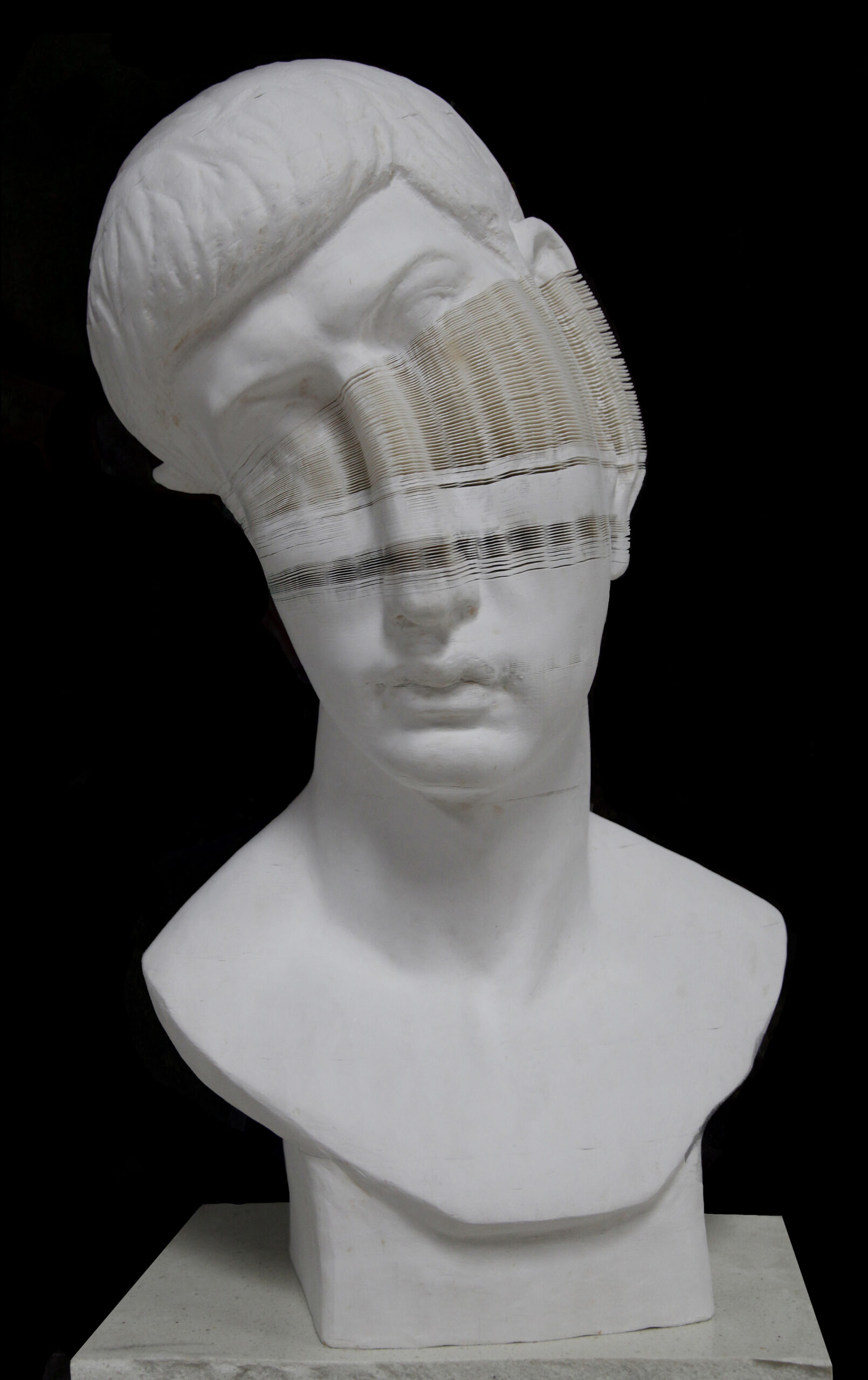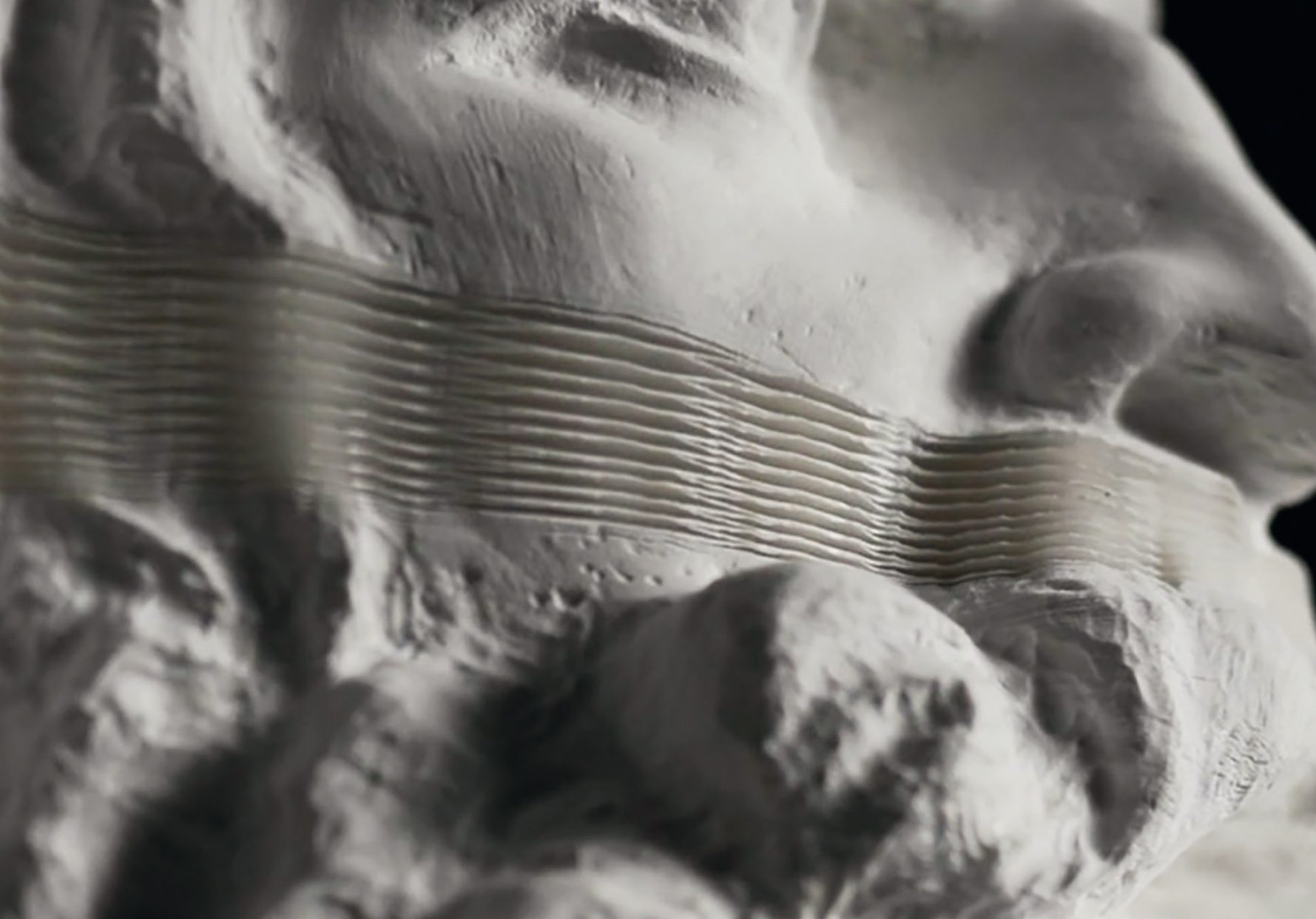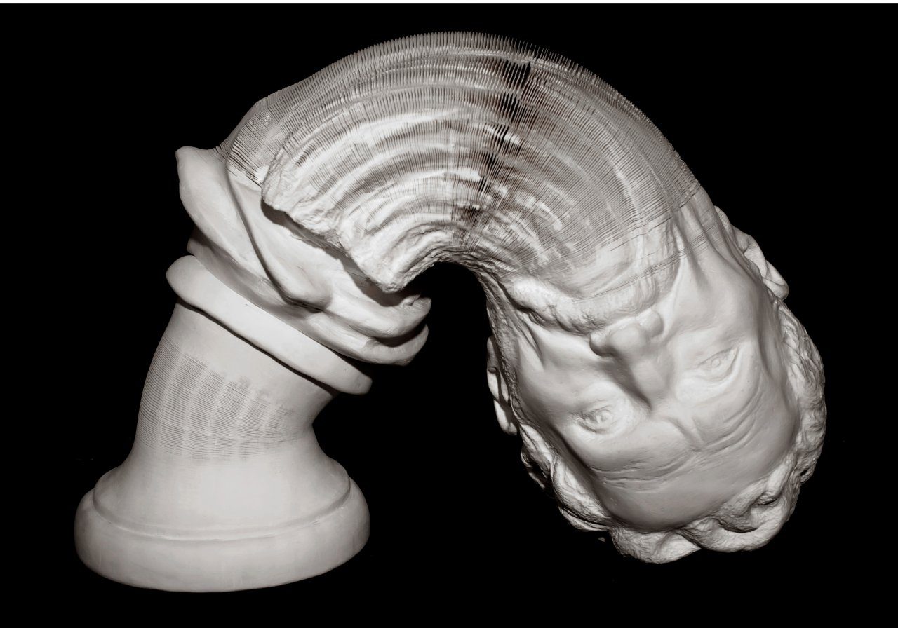 Using an electric saw, he carved these stacks into identical human figures. This way the structure becomes elastic forms, which makes it transform the paper to stretch, twist, get longer and withdraw yet still take the appearance of porcelain.