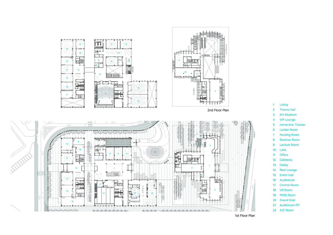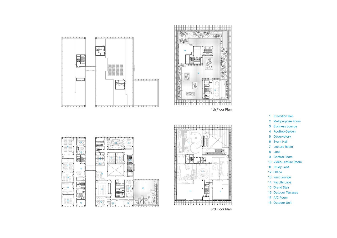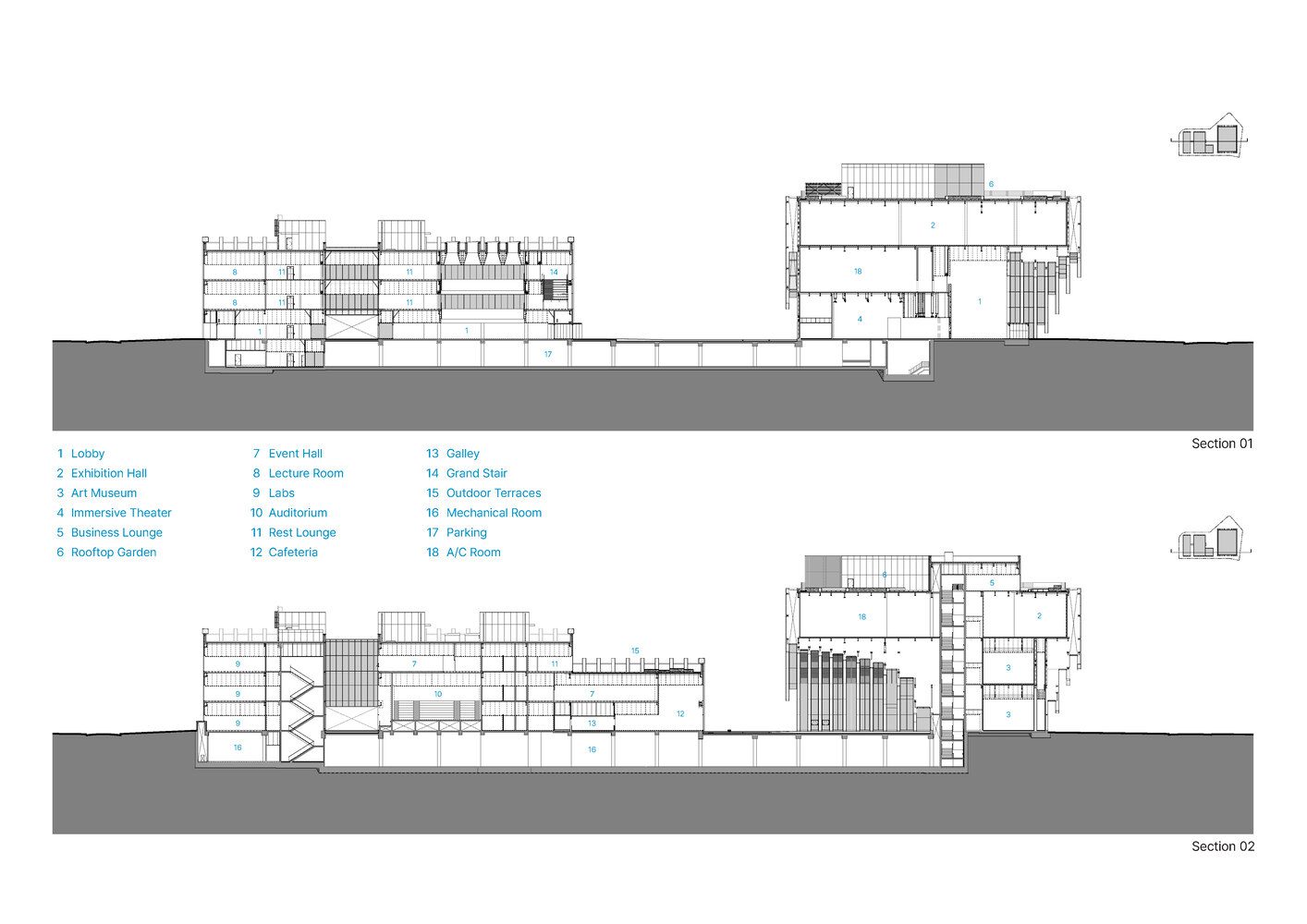Spatially, the project is divided into distinct yet interconnected zones: a ground-level public plaza, a floating gallery space on the third floor, and an educational center woven around an atrium and shared stairs. This vertical stratification enhances accessibility while symbolizing the openness of corporate space to the community. The following circulation path within the gallery reflects a natural narrative, unfolding across three dimensions.