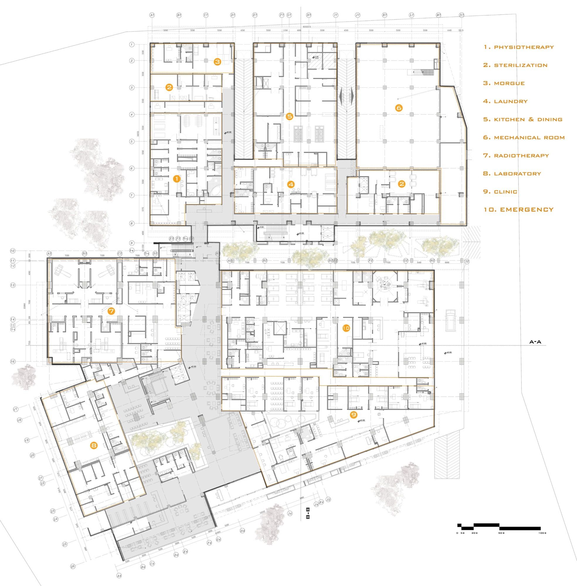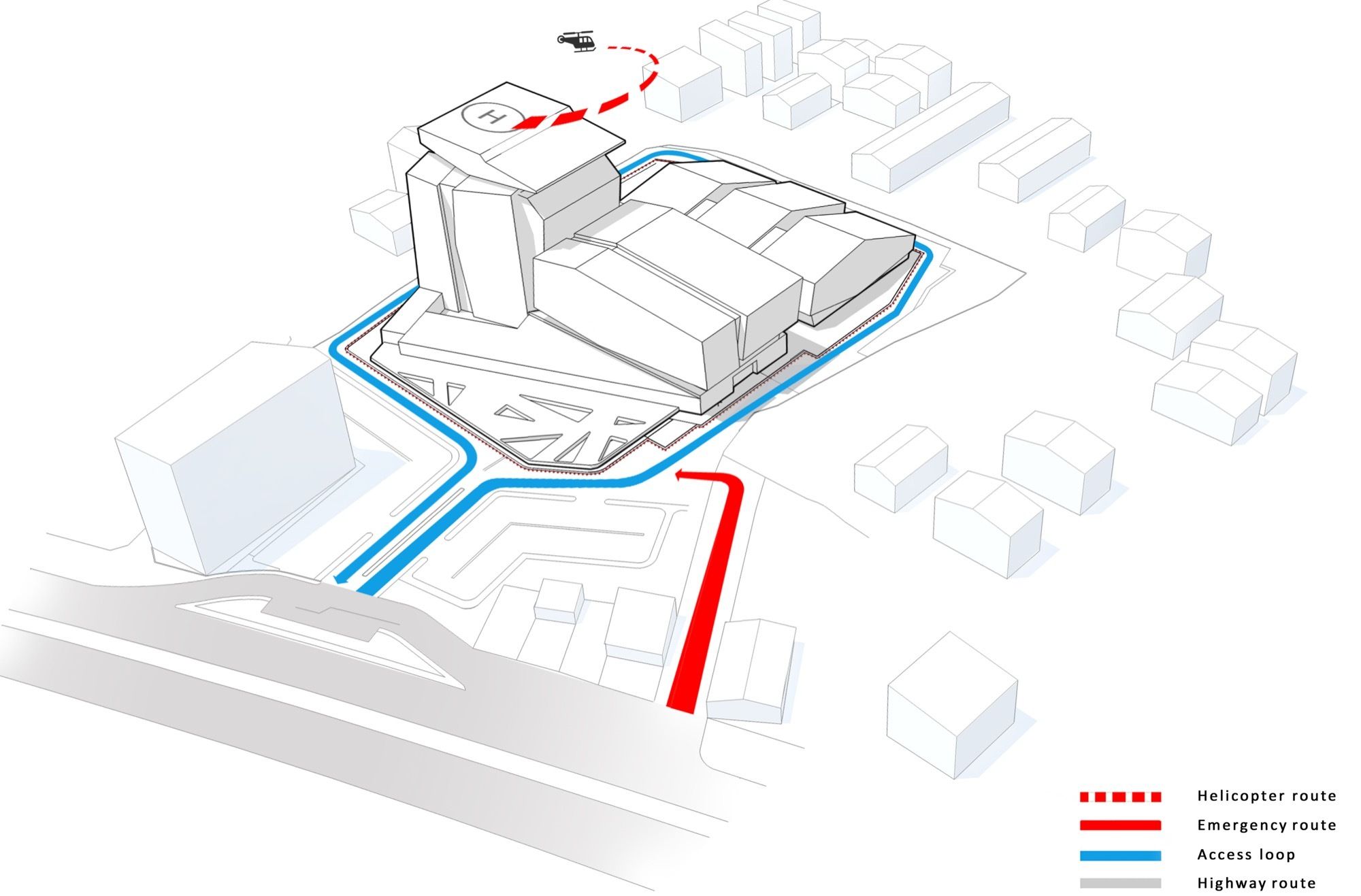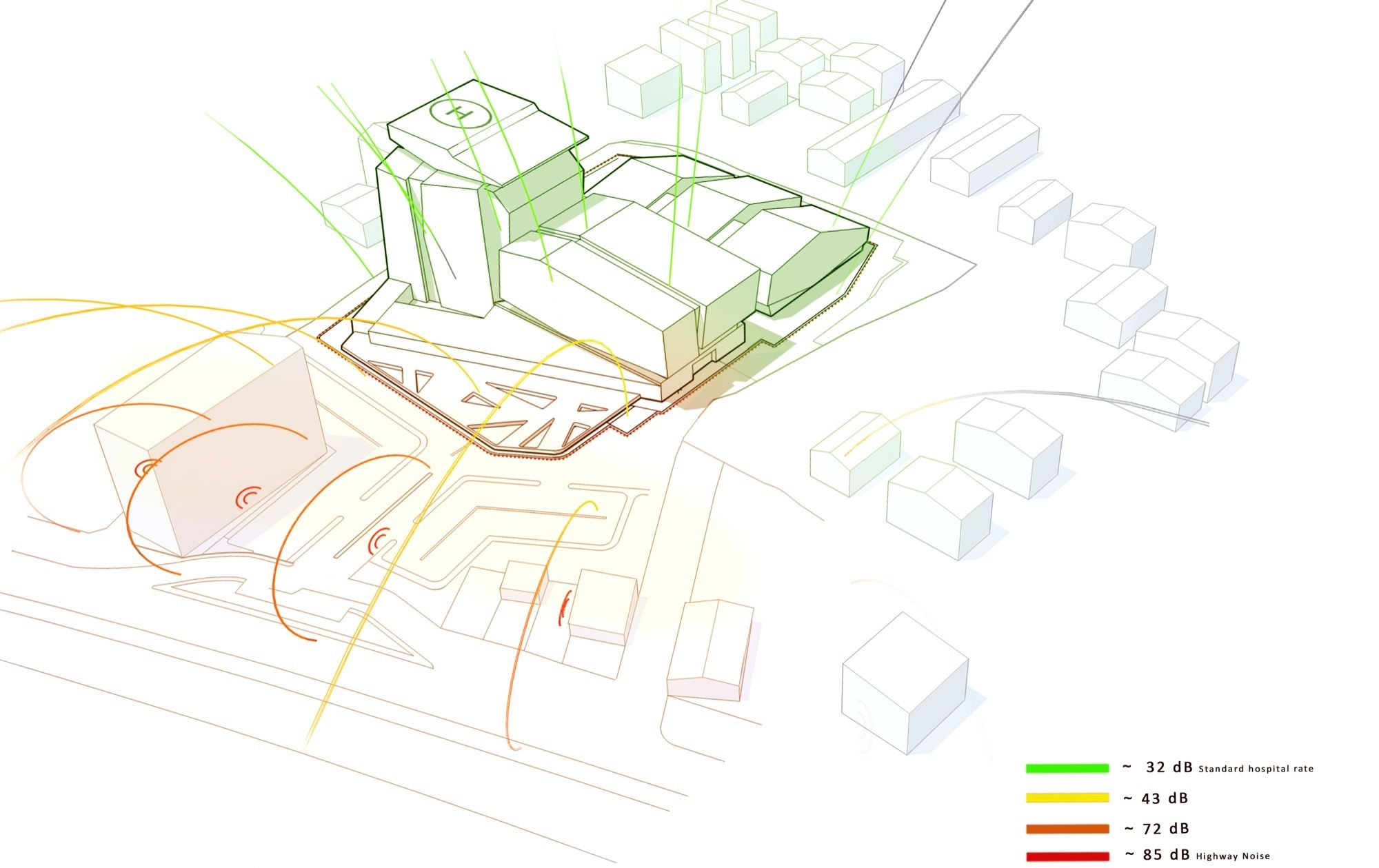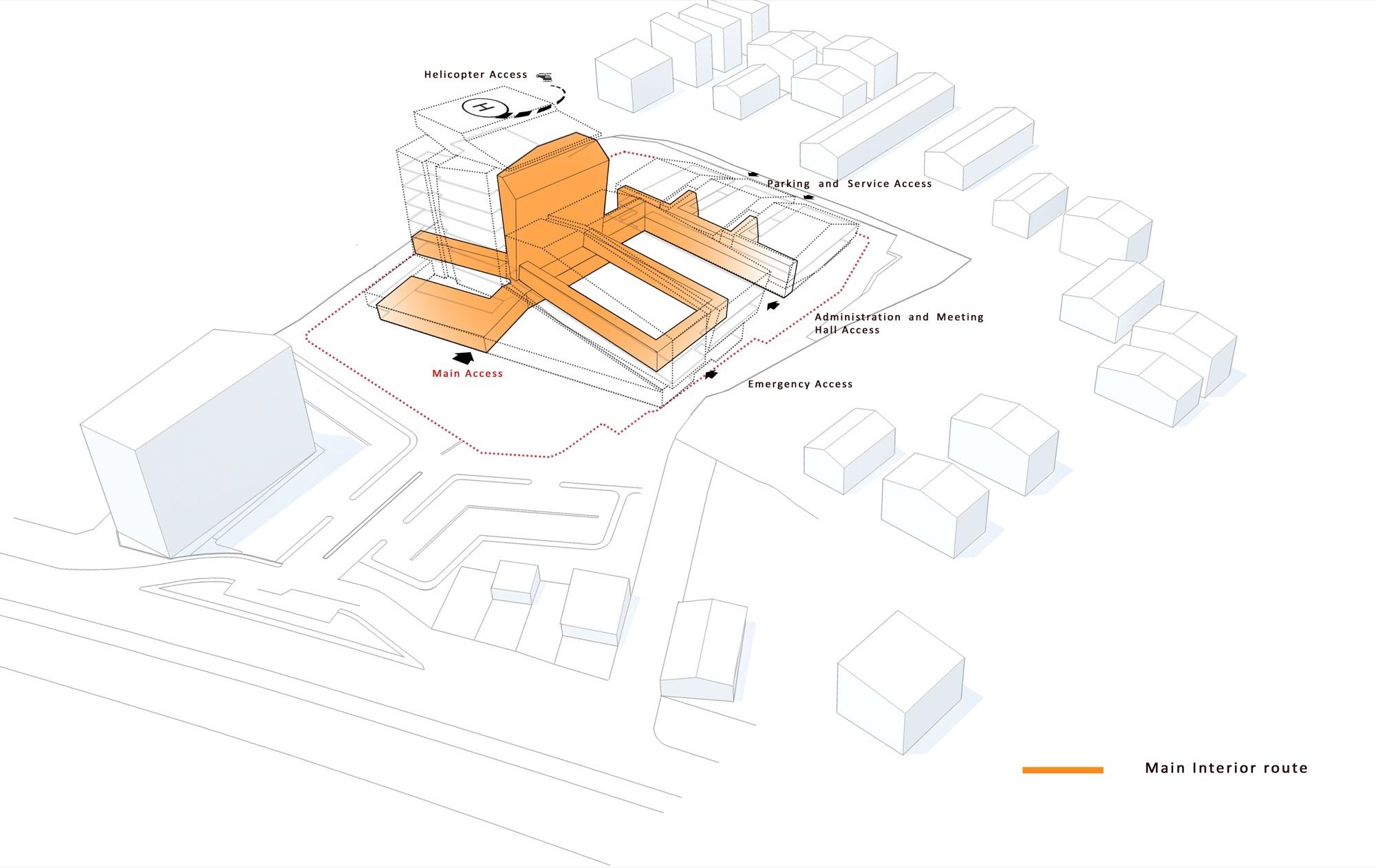A 17400 sq.-meters site in Goslar district of Rasht, provides an appropriate context for designing and constructing a General hospital of Rasht. Pars hospital is a 23000 sq-meters design,occupied by 120 beds in line with latest international health care standards while it can be considerable care regional hospital under construction. Thebuilding is extended along east to west to be adopted with appropriate climatic direction in the context. We-as designers- encountered a special project with functional complexity, special physical planning, approved criteria and codes, sophisticated medical equipment, economic issue, climatic and environmental condition such as high level of ground water and heavy rainfall during the year. Moreover, they all must be combined with an aesthetic aspect that is pleasant for patient, visitors and medical staff as our prime audience. On the other hand, a dynamic, innovative, warm, secure and reliable functional architectural space that suited to present-day demands was desirable to heal, alleviate the pain, anxiety and emotional pressure .