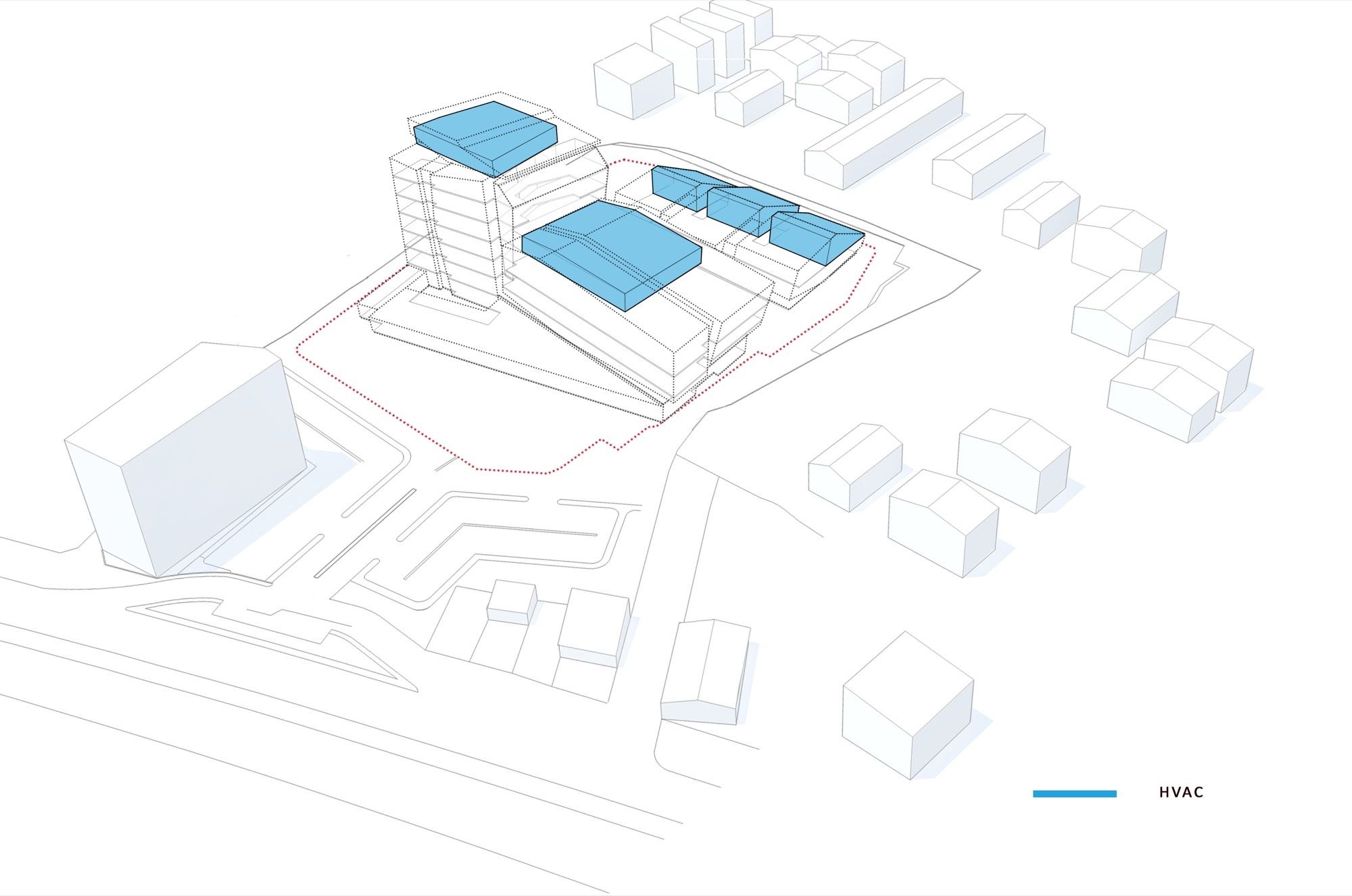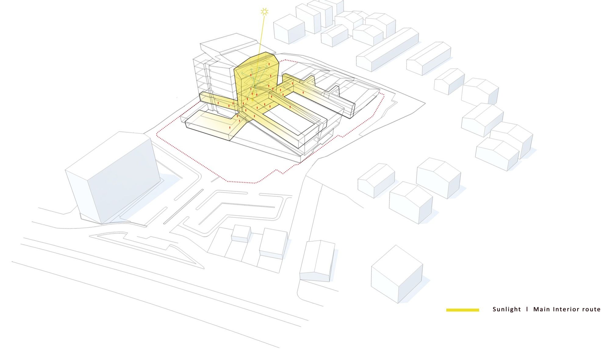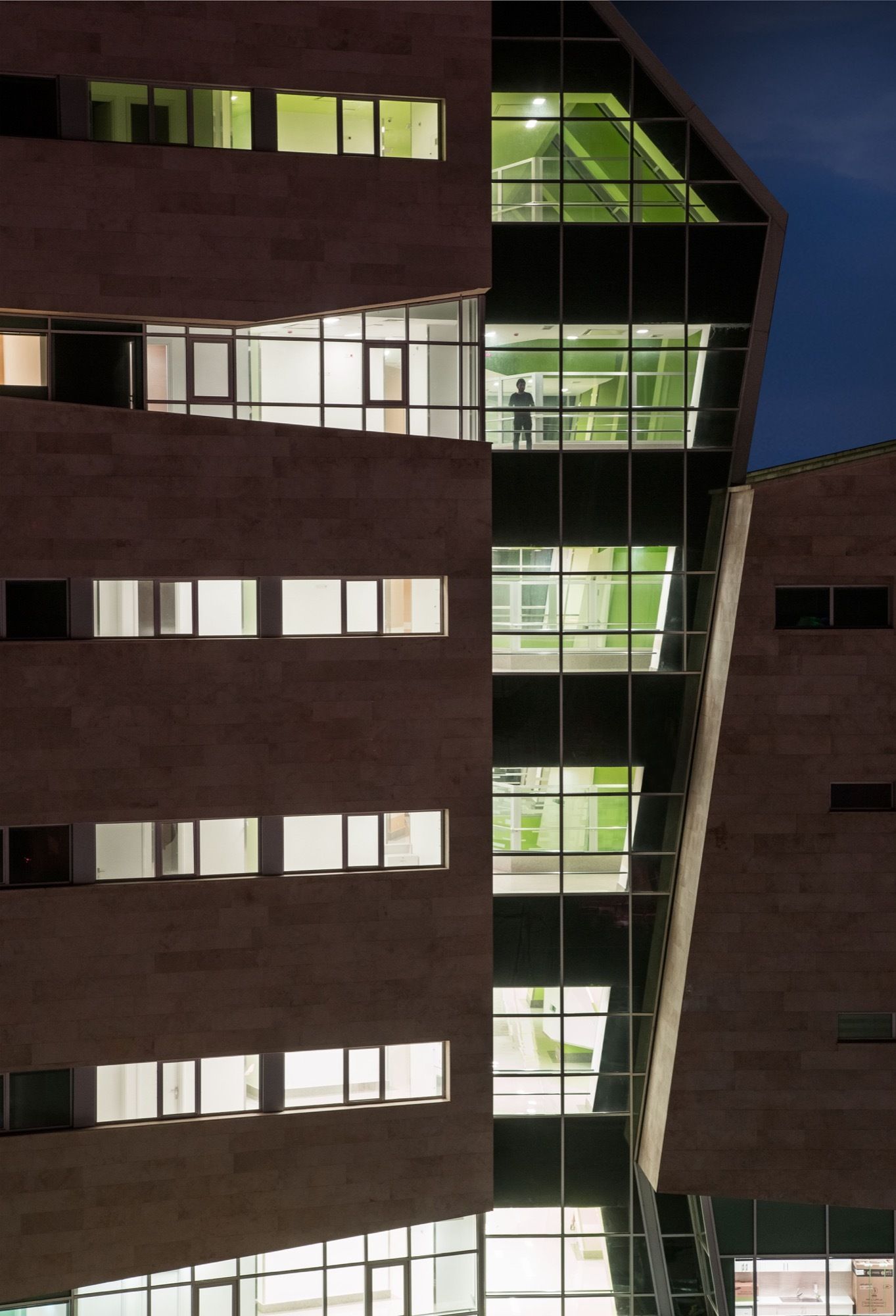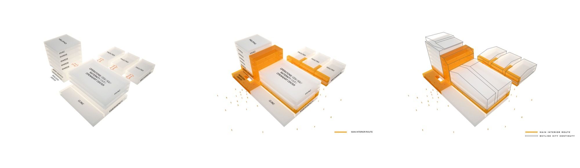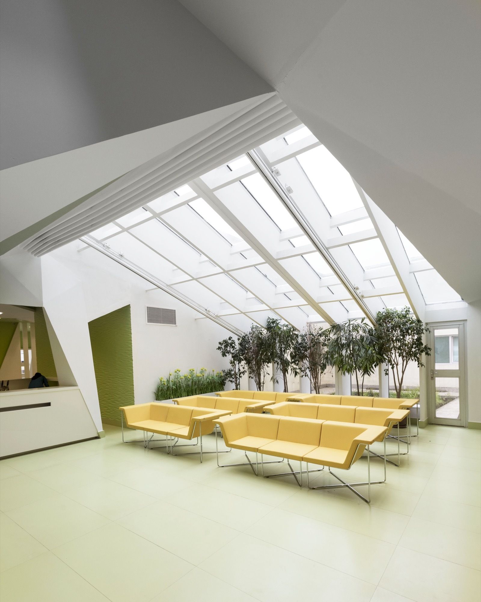 In the Autumn of 2007, New wave Architecture ‘sproposal was selected among others and delegated as designer of the project. The project is trying to not only present responds to physical planning requirement and client‘s demands, but also approach to a unify form and leaves effective influence on this region of the city.Composing several blocks in three different height built on the basis of concrete structure features a comprehensive medical infrastructure .Moreover , being integrated via a transitive atrium that pervades and provides natural light accessibility in different departments, while porches create a subtle and interactive visual communication between inside and surrounding environment. We attempted to configure a new illustration of hospitals in minds and change the regular mentality of hospital in Iran. The various departments including; laboratories, accident and emergency(A&E),acute care services, obstetrics and gynecology theater& IVF ,ICU,CCU, specialized clinics, pediatric &E.N.T wards, operating theater, Heli- pad and etc. constitute a modern and well-equipped hospital. Consequently, high speed of modern movement and progressive medical sciences and equipment, accentuate the fundamental role of extension scheme in hospitals design. In this project it is considered to be located in the north, west of the site. White Travertine stone and glass as the main material are applied in combination of wooden texture panels on the exterior walls as a sort of emblematic of vernacular architecture in Guilan .interior surfaces of departments will be covered by anti-bacterial homogeneous floor-covering, exclusively designed for health care facilities.
