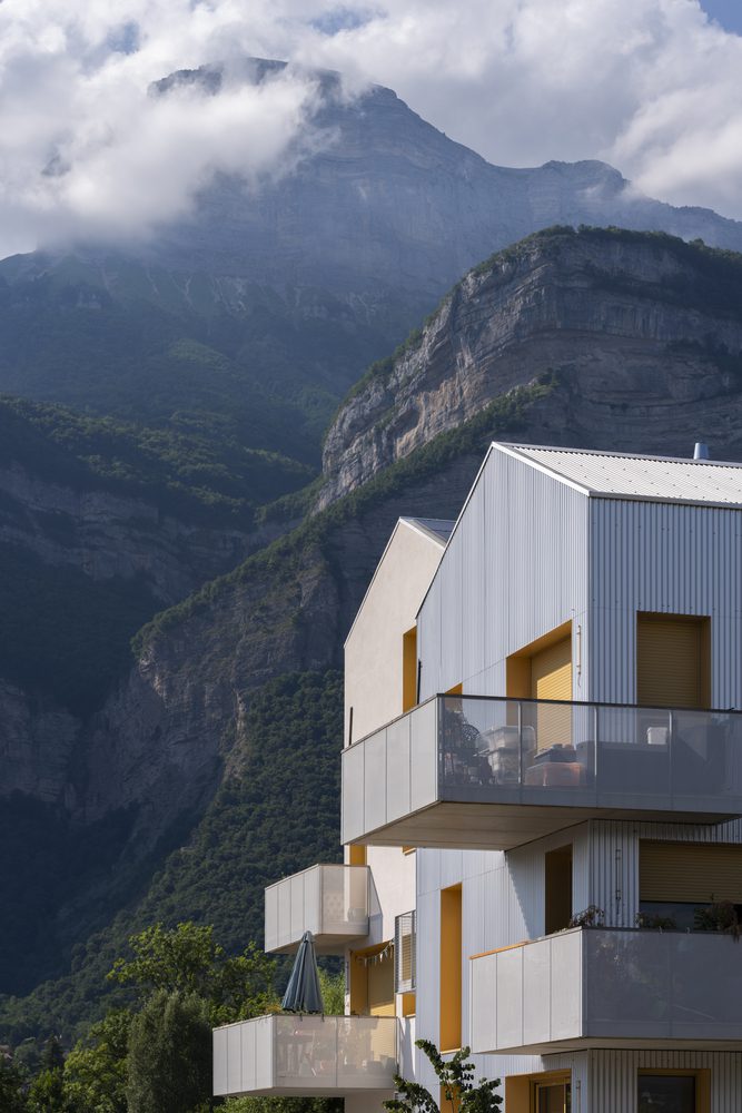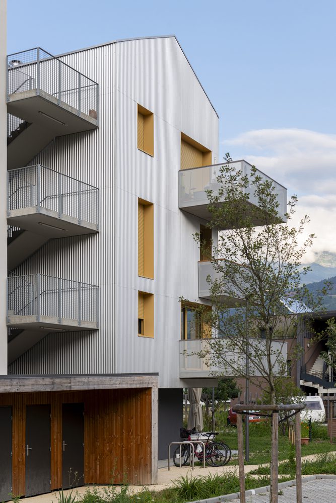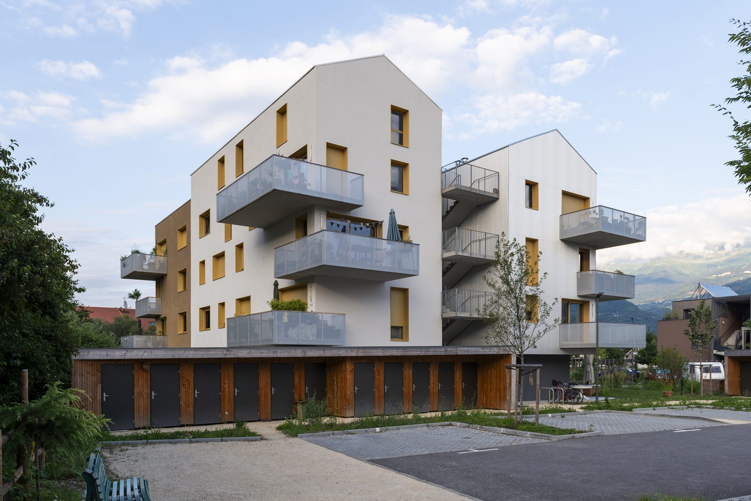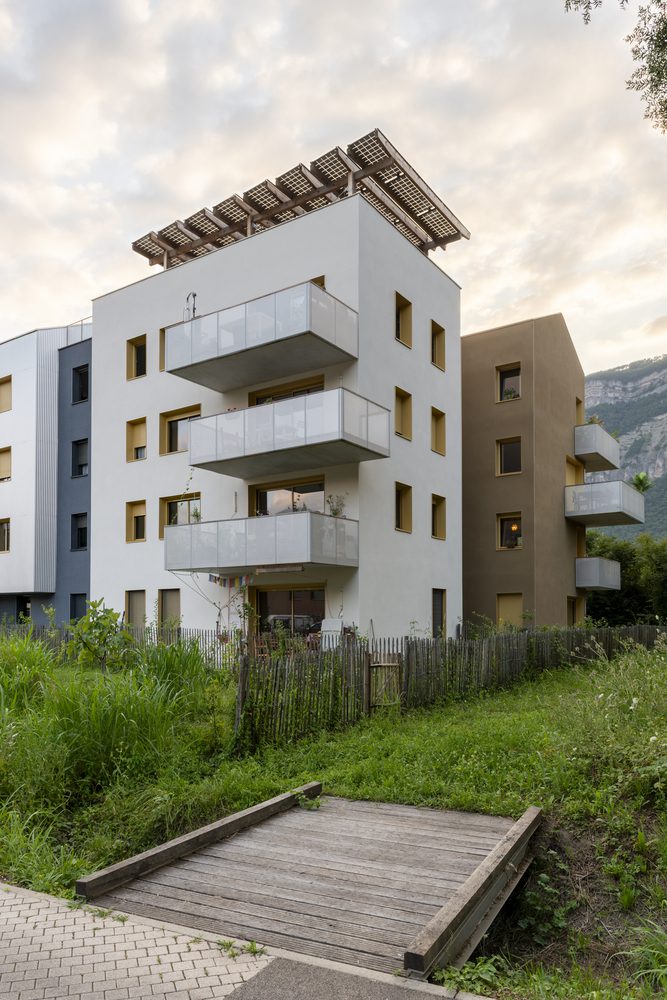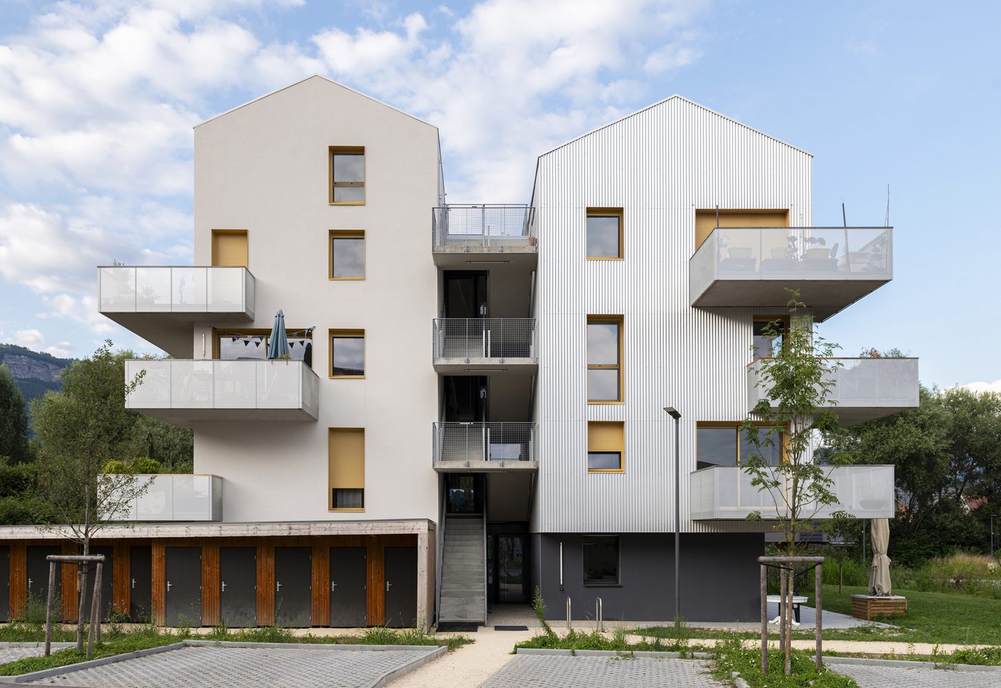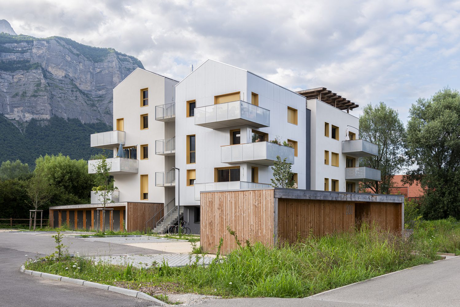 Participative social housing is located in the Isère Valley in Crolles (France), and benefits exceptional views of the Chartreuse and Belledonne mountain ranges. It was initiated by the municipality, a social housing provider, and a group of residents who wanted to design and build a 15-unit housing project (from one-bedroom to four-bedroom duplex), using a sustainable approach.