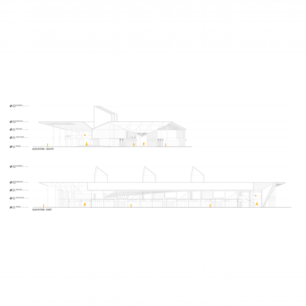 The design for the Pasudeco Center celebrates the structure of the original building, an iconic sugar mill built during the turn of the century, and transforms it into a vibrant, multi-purpose community hub with public art installations, retail spaces, offices, and a theater. The original A-Frame structure guides the building’s updated construction, while yellow steel columns reference the mill’s originally colored columns that ran throughout the historic site. The metal surfaces that wrap over the structure are folded taut, emphasizing the distinctive buildings throughout the Center’s campus. Located in Pampanga, Philippines, Pasudeco aims to contribute to the growing vitality of a significant economic and cultural urban region of the country.