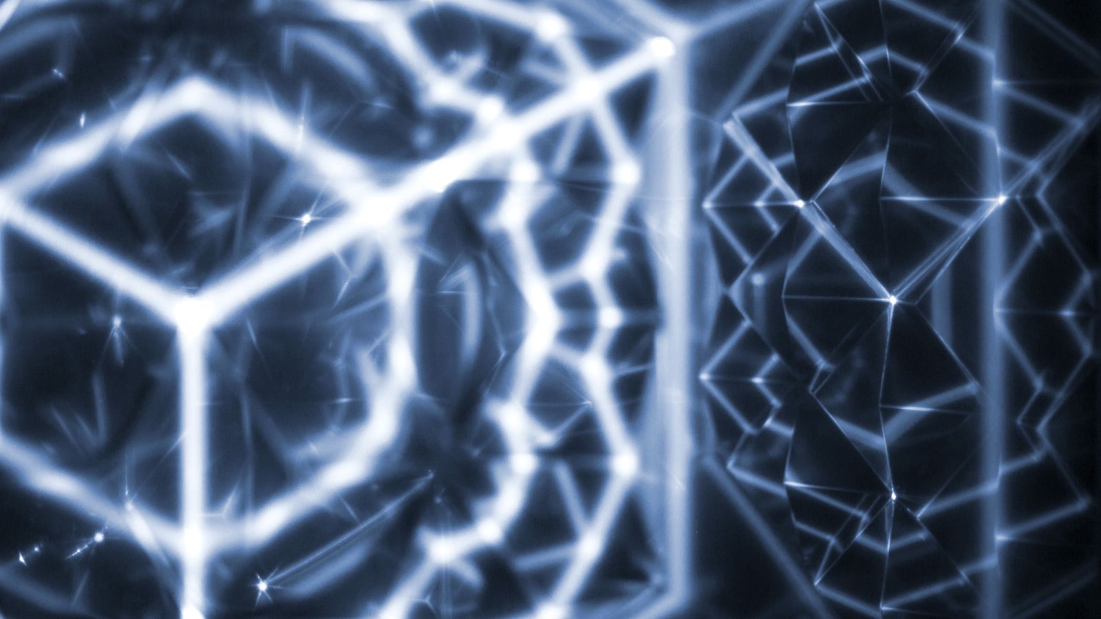 He pre-composed the reflected shapes and patterns to precisely move to the harmony of the music, the changes in the dynamics of the music resulted in the variations in the generation of the displayed geometric configurations. He made the refracted light beams and simple shapes follow the path of the music creating a never-ending trail of dancing shapes.