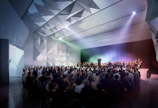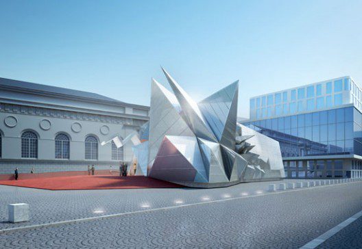 Reminiscent of a tame, unassuming stone laced with crystalline outgrowths, the Pavilion 21 MINI Opera Space by Coop Himmelb(l)au is a smart little building. The major design challenge faced by the architects was one which saw temporality faced off against materiality. Good sound was required for the program, but good sound is something which requires mass and solidity. The ability for the building to be disassembled and rebuilt at a succession of locations was also called for, but this implies a construct light of weight and slight of structure. Coop Himmelb(l)au approached this diametrism from the perspective of geometry and adaption, creating ‘soundscaping’ with brains rather than brawn. Below is a more detailed glimpse at the solution, provided by the architects.