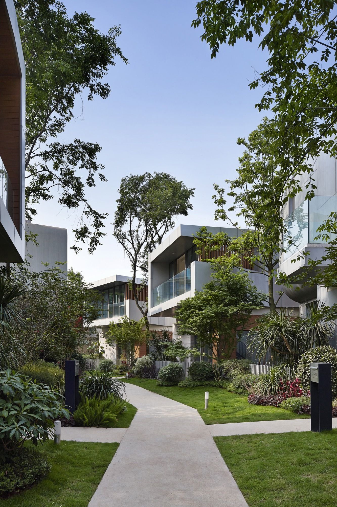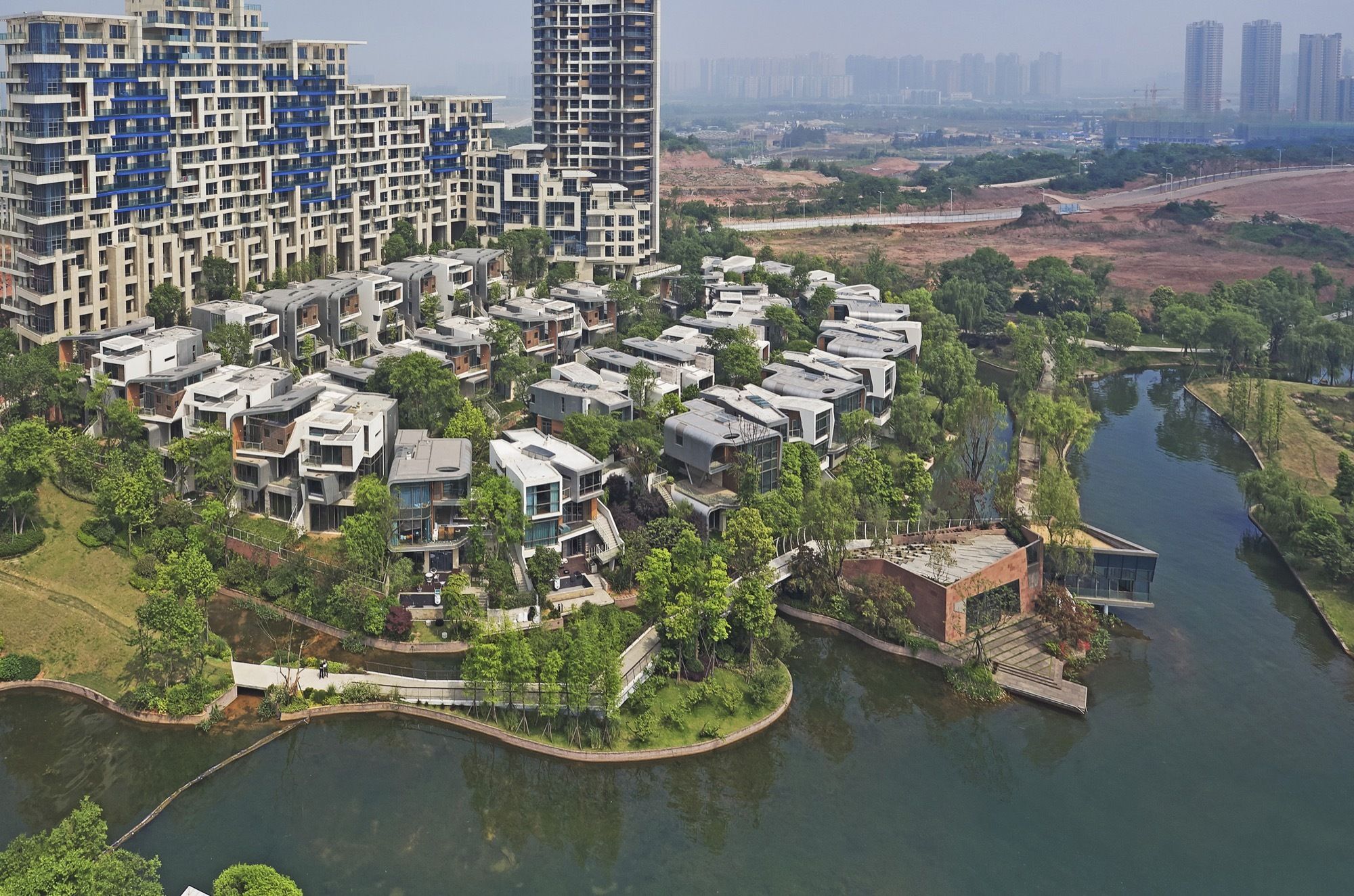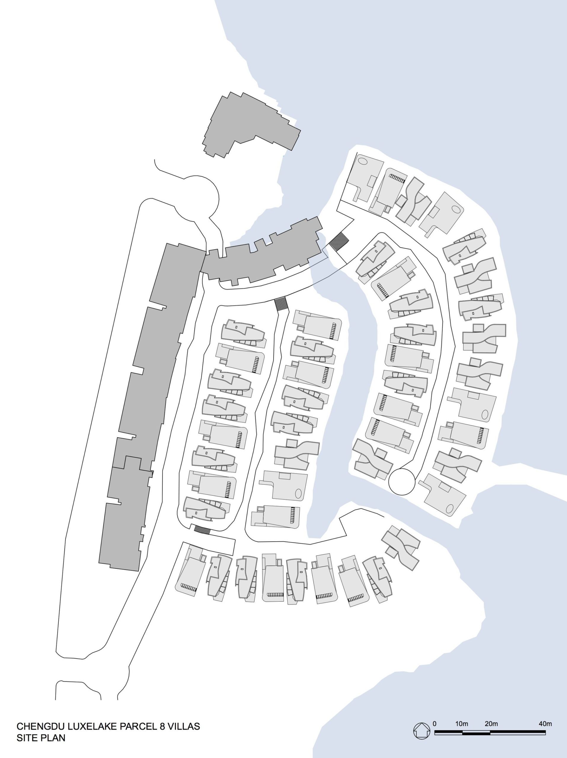 This project provides for four different villa types to be located along a man-made lake and canal, on a site within the new Luxe Lake housing and mixed-used development in Chengdu, China. Each of the villa types is three stories high, with the public living areas located at the middle levels which are accessed from the road.