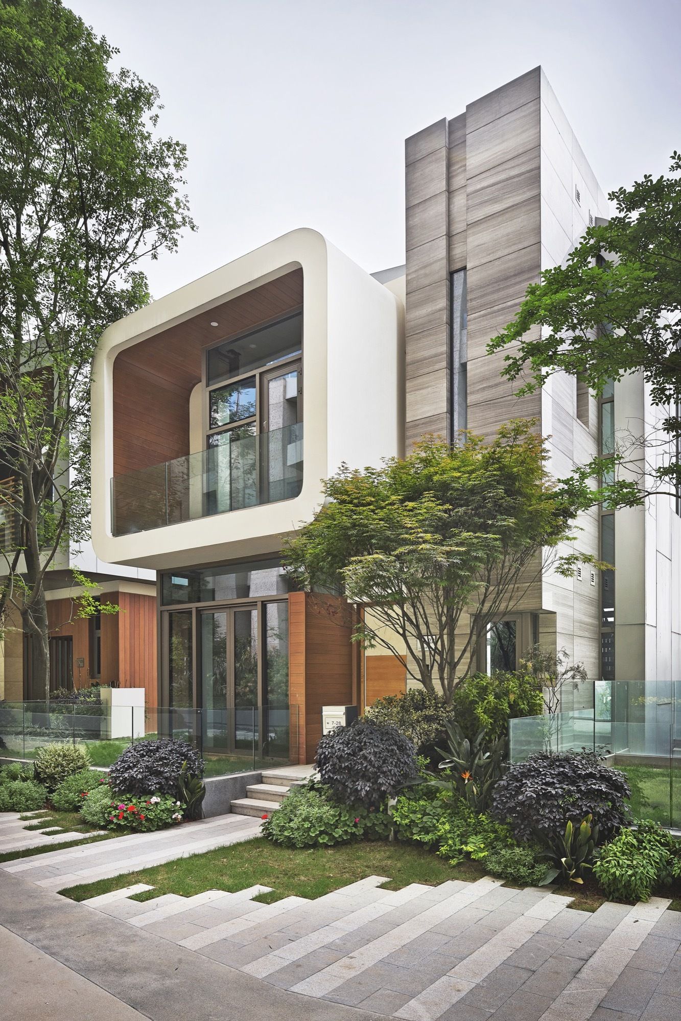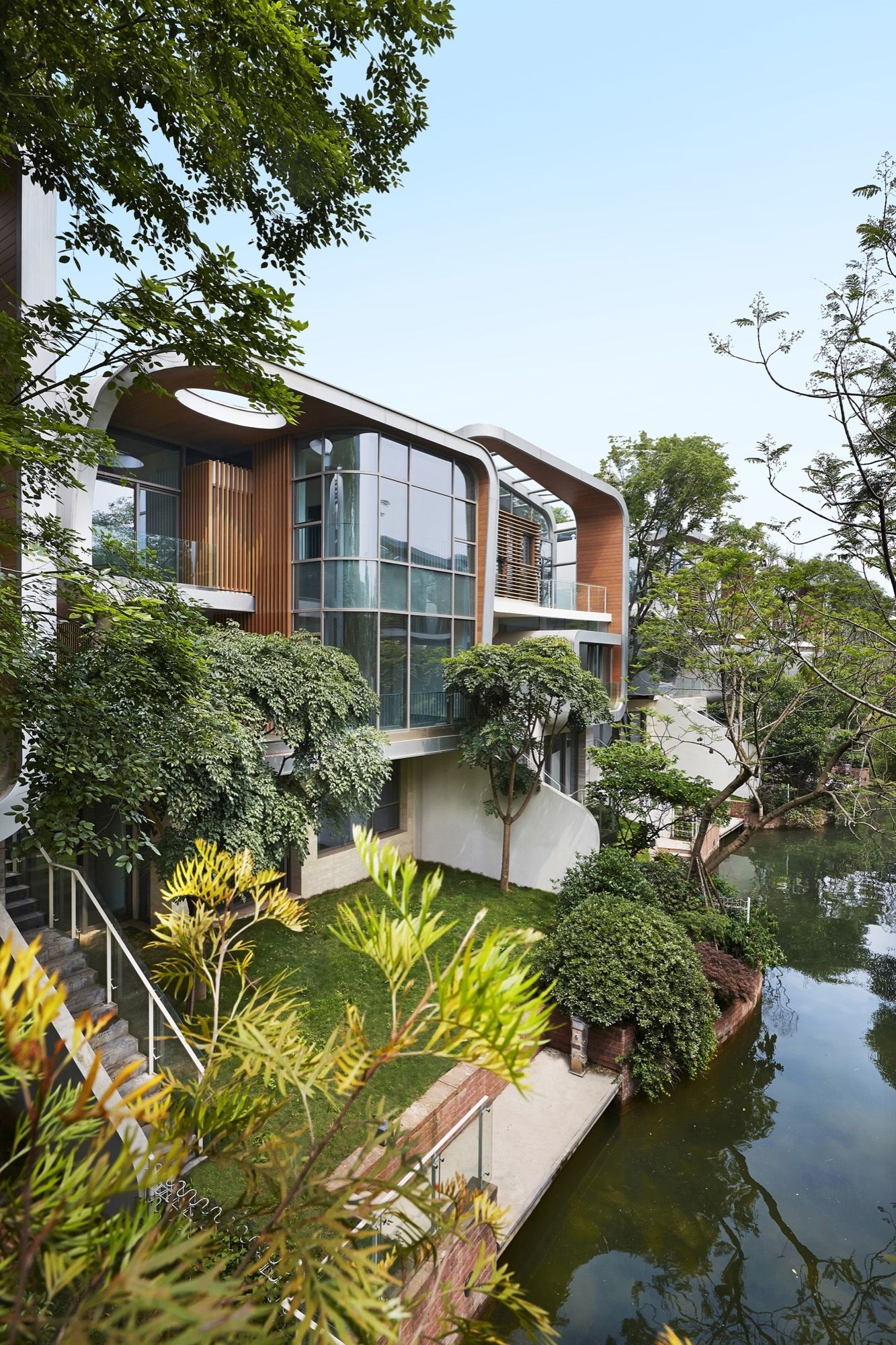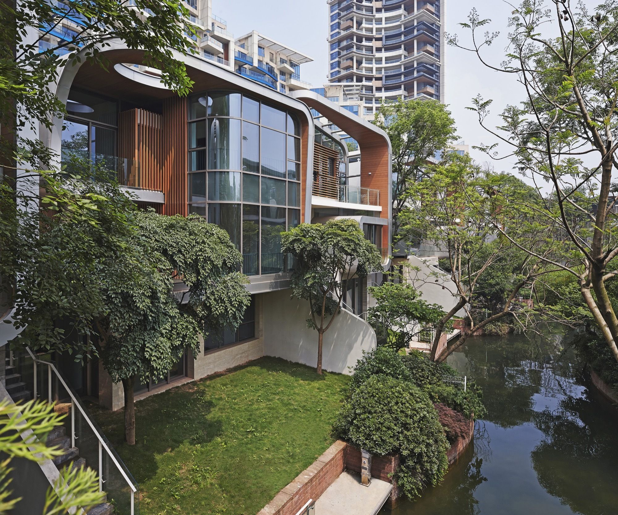 This project provides for four different villa types to be located along a man-made lake and canal, on a site within the new Luxe Lake housing and mixed-used development in Chengdu, China. Each of the villa types is three stories high, with the public living areas located at the middle levels which are accessed from the road.