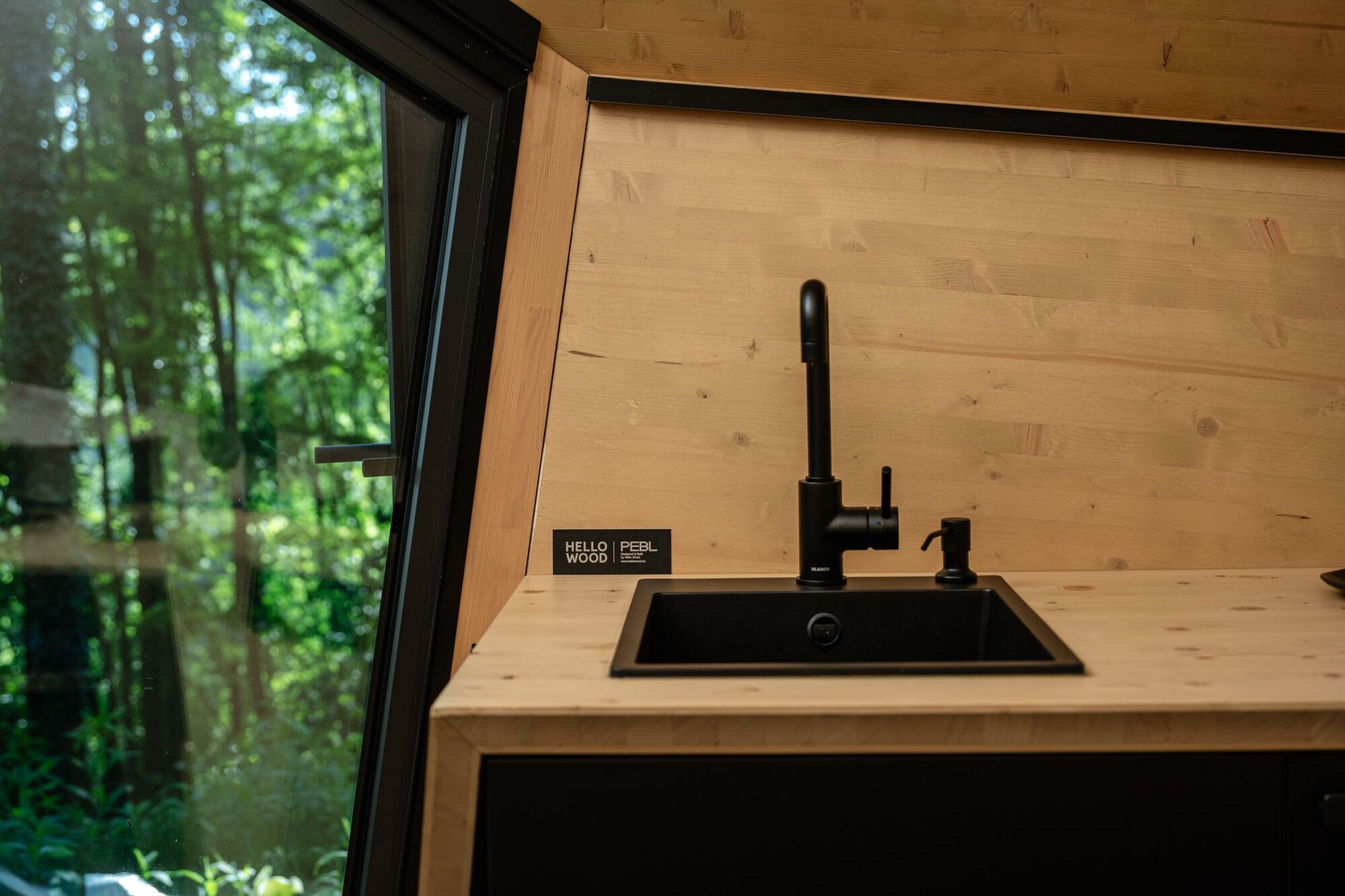 From creative camps to full-fledged development – Hello Wood initially focused on organizing architectural creative camps, but over the years, it has grown into a full-service product-developing design & build studio. While it gained recognition through its public installations, the studio now creates its own accommodation developments, embracing the principle of “thinking outside the box.” Drawing on the experiences gained from establishing and operating their Kapolcsi Sziklák Resort, they launched their own glamping era. The newly introduced PEBL Grand is a groundbreaking modular cabin concept, the result of an architectural development that began four years ago. The initial model was made possible by a returning, satisfied client who is open to innovative ideas — previously, he commissioned a special airplane-shaped cabin, the Jet House, as a dream project for his 12-year-old daughter. Thanks to this supported prototype development, the cabins have now made their way all the way to New York.