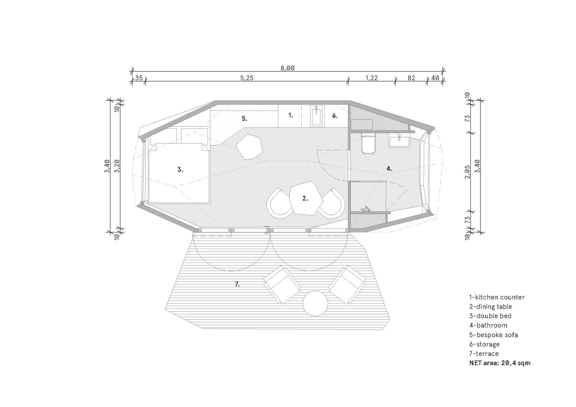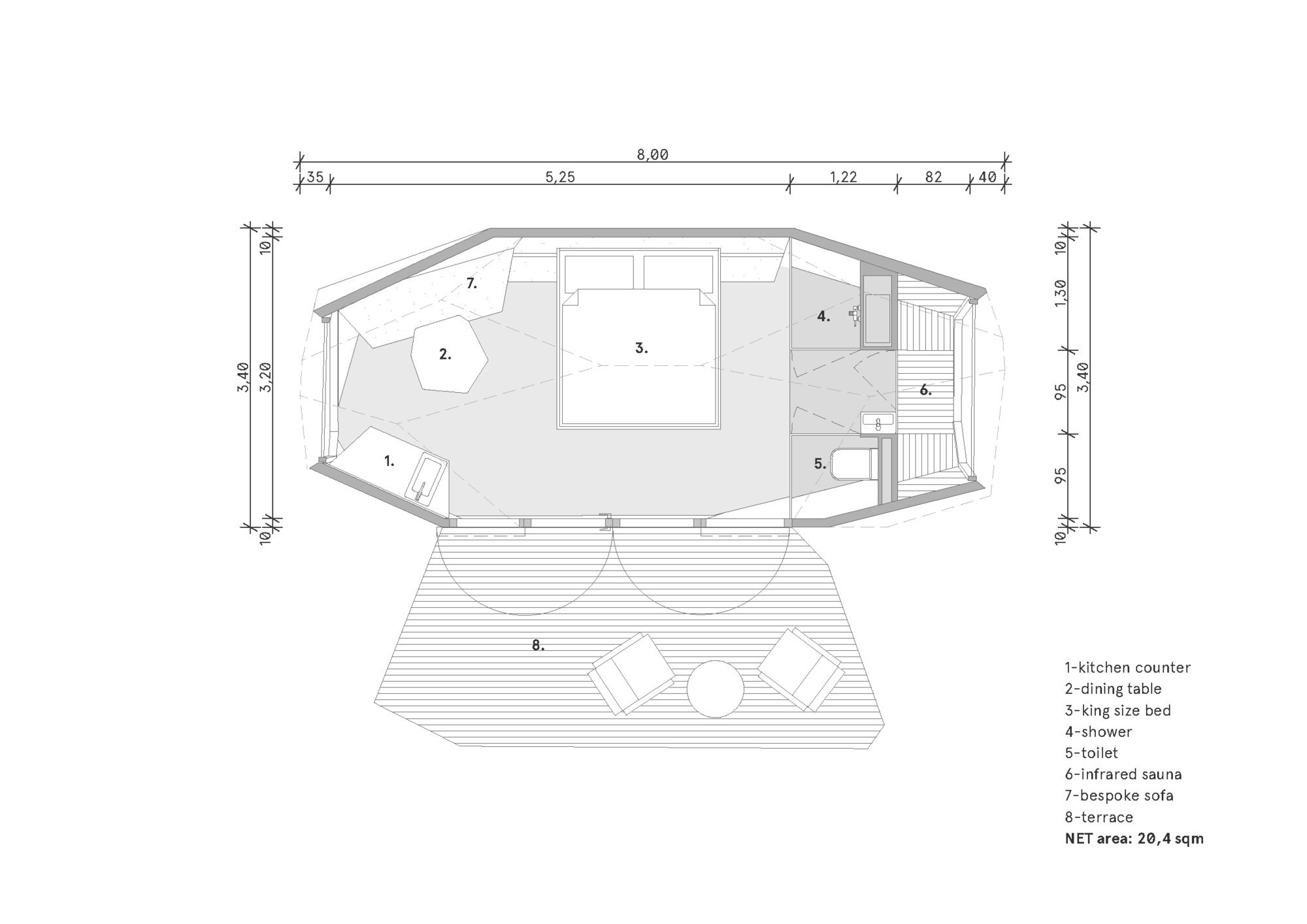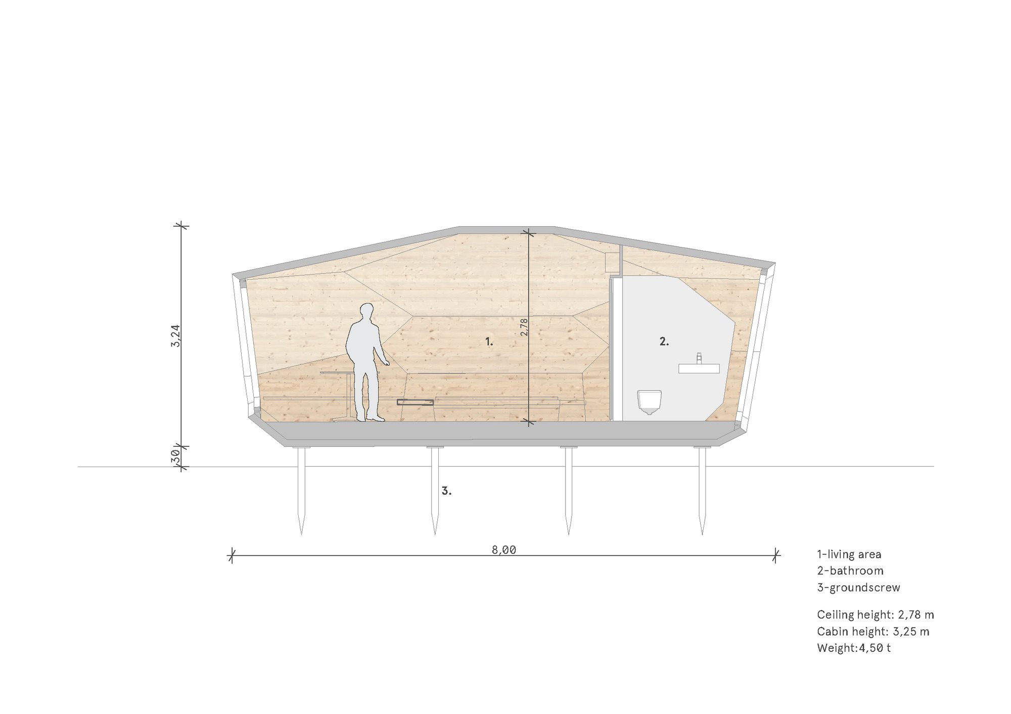 Customization meets efficiency – The production and installation of the cabin are built on predictability and speed. The capsules can be fully prefabricated, assembled, and delivered turnkey-ready throughout Europe, while for more distant locations, they are shipped flat-packed in standard sea containers. On-site installation of the prefabricated cabin takes approximately one day. Thanks to the ground screw foundation system, no concrete base is required, minimizing environmental impact. This way, the necessary site preparation can be completed in just half a day. This process is especially advantageous in accommodation development projects, where delays are often a challenge.
