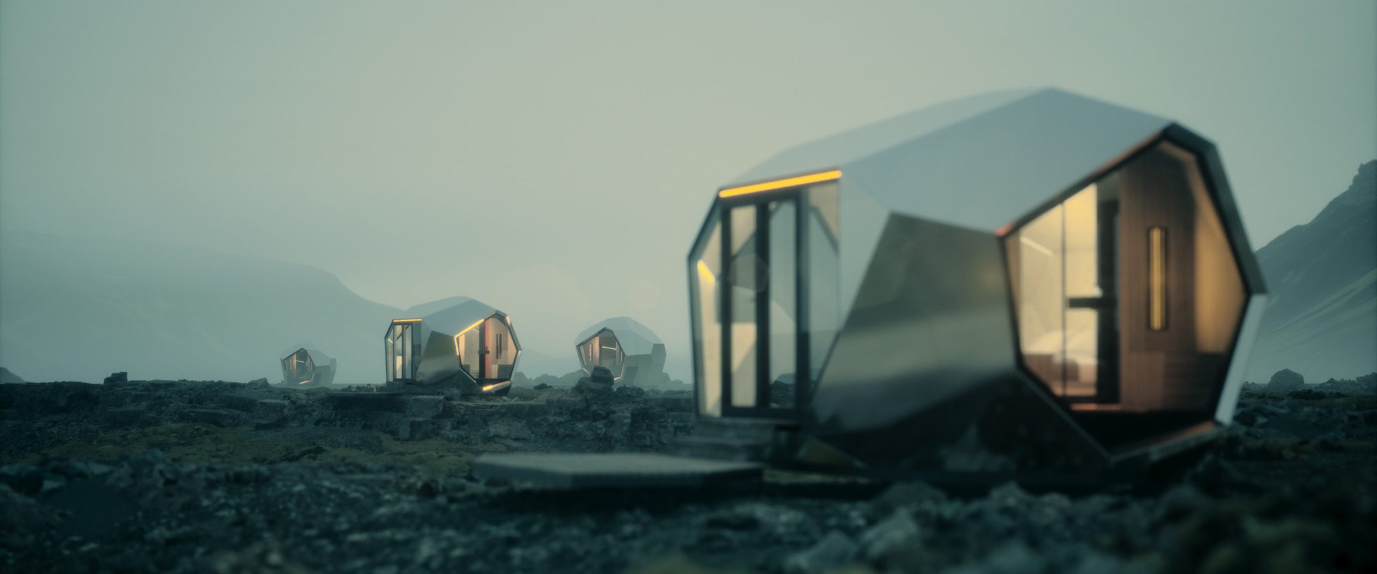 Innovation in technology and design – The uniquely designed cabin completely reimagines the potential of prefabricated architecture. Its appearance is both organic and futuristic; by merging premium-level comfort with environmental awareness, it combines technological innovation with nature-inspired forms. Its design—reminiscent more of space capsules or geological formations—breaks away from traditional, right-angled architectural norms. As a result, the pebble-shaped cabin, defined by a “low-poly” design language, can seamlessly integrate into both natural and urban environments—such as previously unused rooftops.