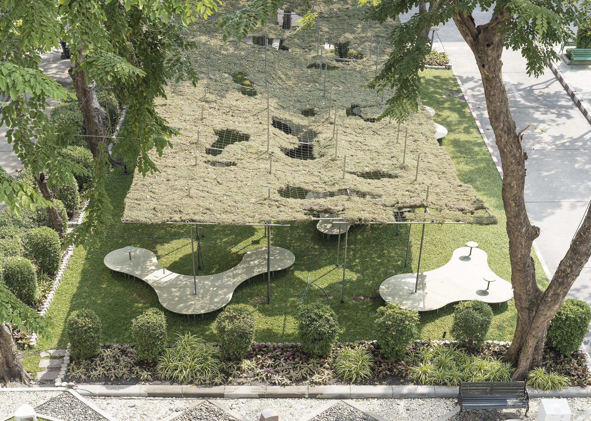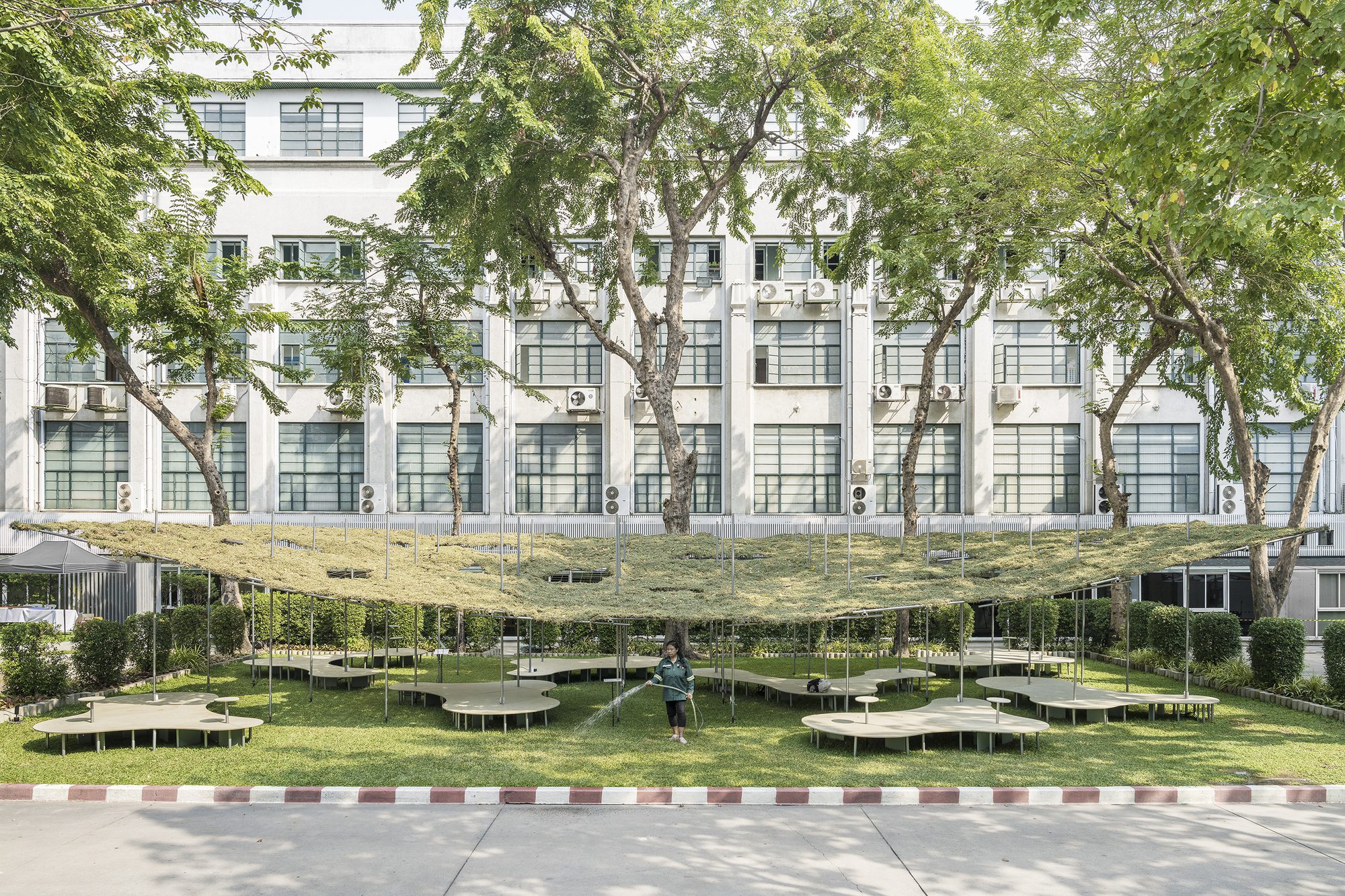 The “People Pavilion” begins by approaching the concept of “Livable Scape,” simulating the opportunities by repurposing the Garden space of Bangkok City Hall during non-operational hours. This is achieved by creating a “public” space in the form of a pavilion that serves as a meeting place where people can meet, gather, encounter, have conversations, discuss, and support different activities for people in various roles.