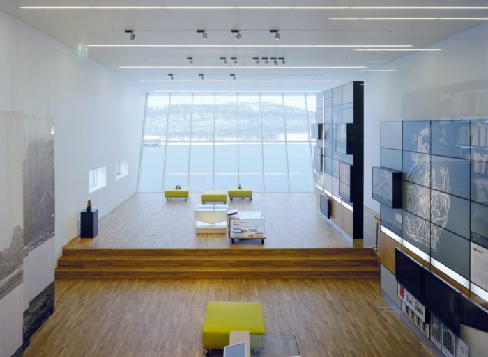 At the east end of the exhibition room, one can look down on the historical church green, while to the west, one is confronted by the timelessness of the great coastal landscape. In this way, the building combines – as Petter Dass did in his writing – earth and sky, past and present“, explained Snøhetta. This project includes  designing a new museum building, a landscape plan for the surrounding site, parking facilities and a service building.It was financed by Alstahaug kommune, Nordland fylkeskommune, Kultur-og kikedepartementet and commercial contributions. The architects have continuously been involved in the process since 2001 and until the opening of the museum.