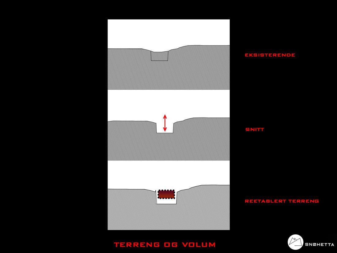 Snøhetta made a cut in the landscape, creating space for a freestanding building, which balances the mass removed. This solution creates an  unobtrusive relationship to the adjacent historical sites and yet allowing an expressive architecture. The new museum pictures the historical timeline from the church’s beginnings to the present day.