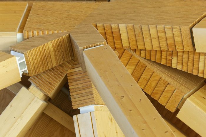 Internal tensile steel hardware was inserted into the nodes during fabrication in a warehouse and attached to the columns on-site. The resulting structure is essential to the spatial expression of the Museum and represents a significant advancement in sustainable wood technology.