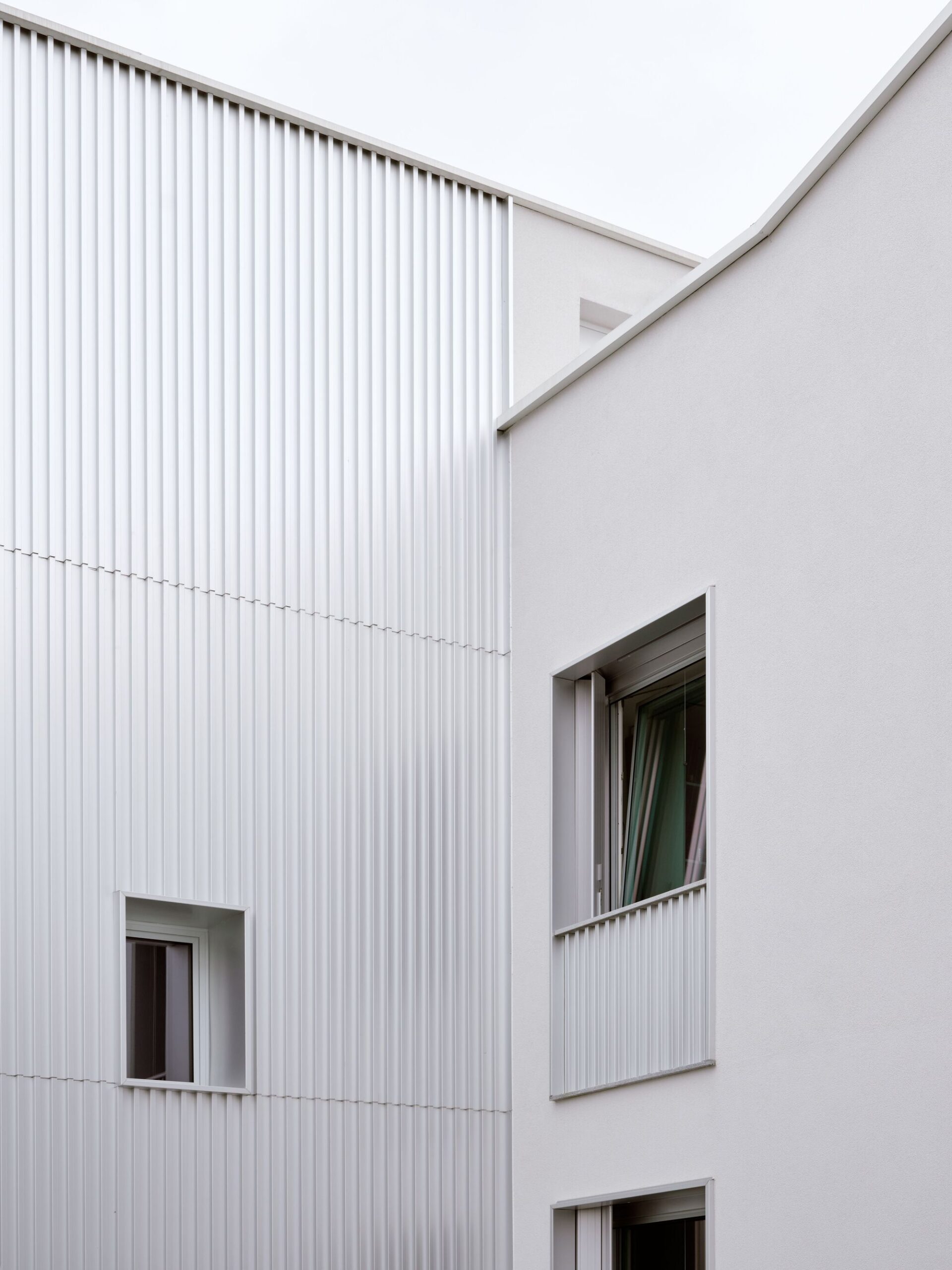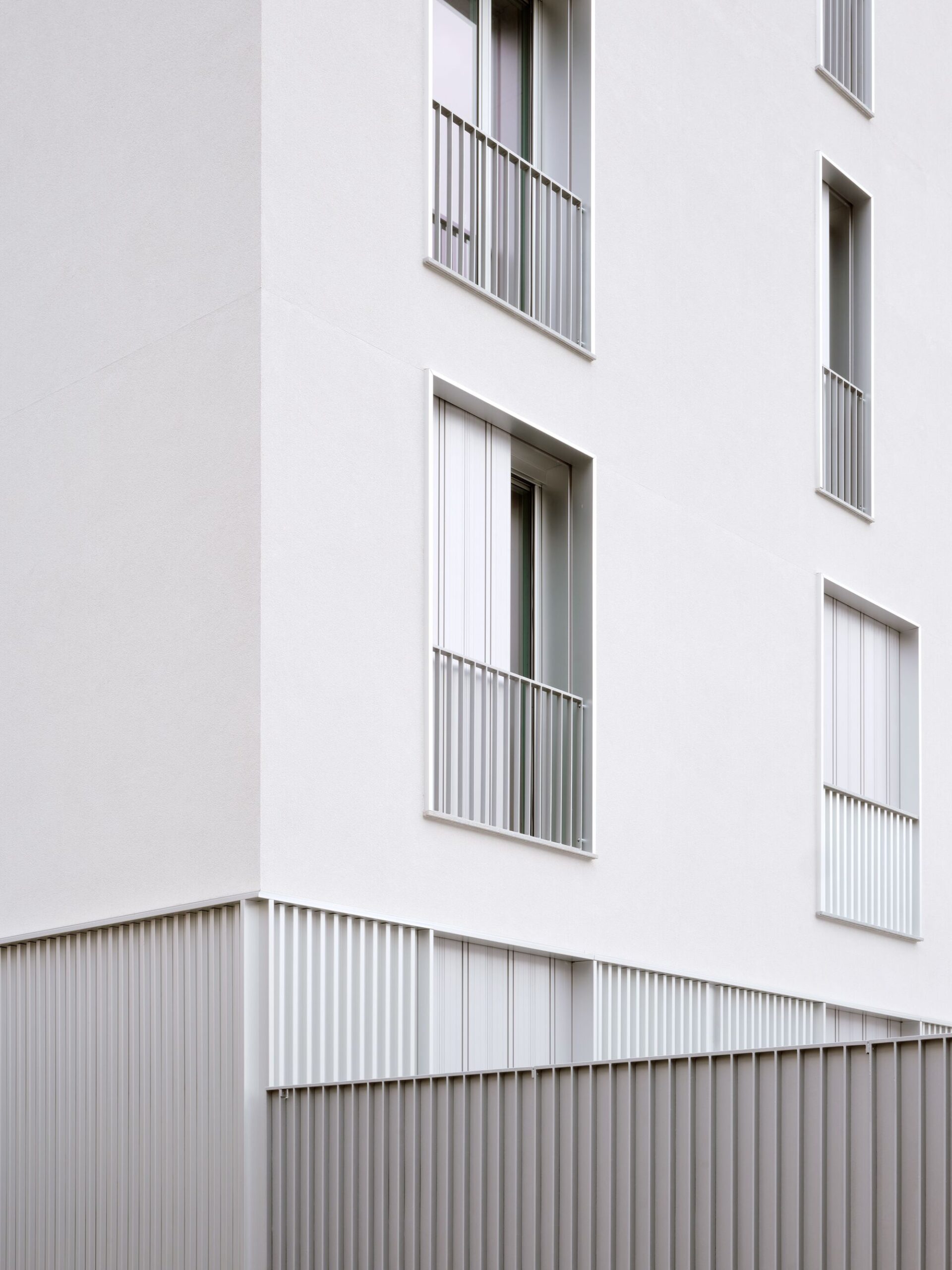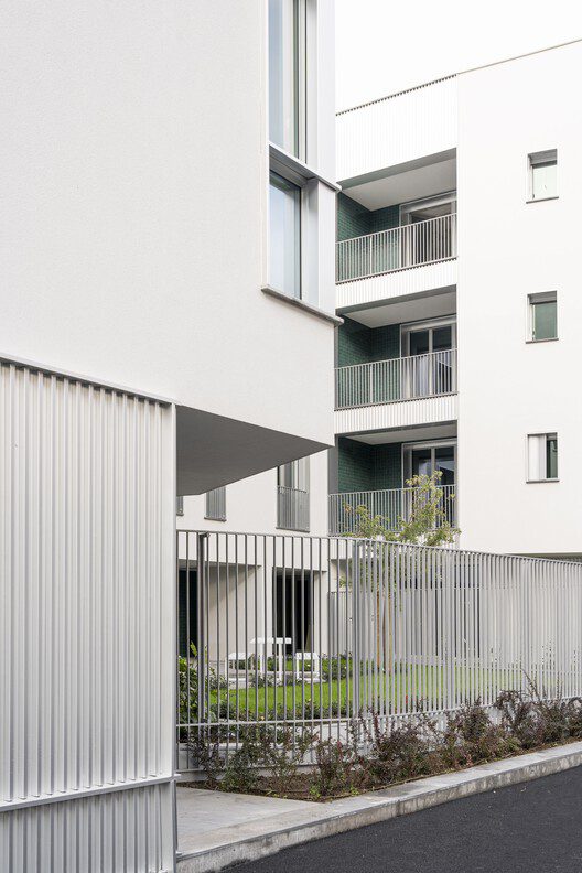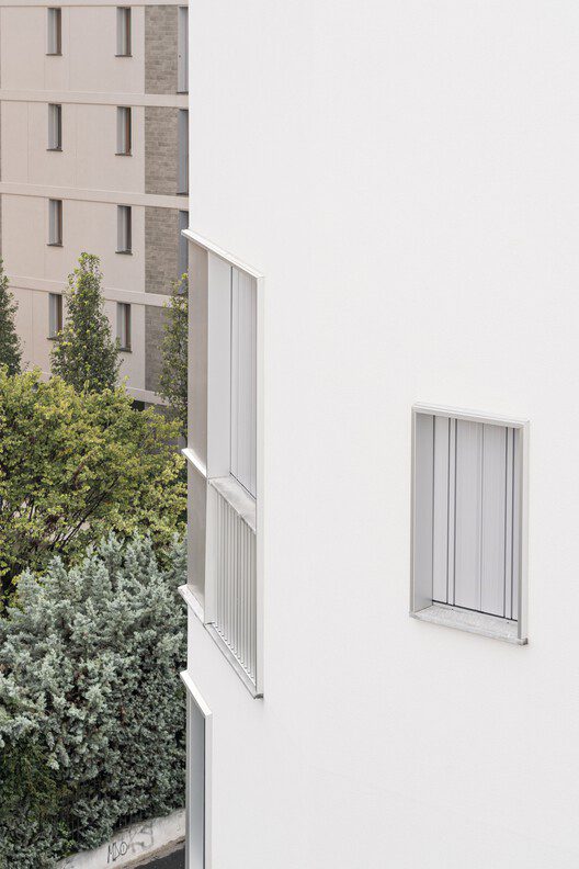 Featuring strong distinctive elements, such as a play of neat white-plastered volumes and architectural details of loggias and windows covered in sheet metal, the project reinterprets the modernism of Milanese residential architecture into an elegant, democratic, and understated building.