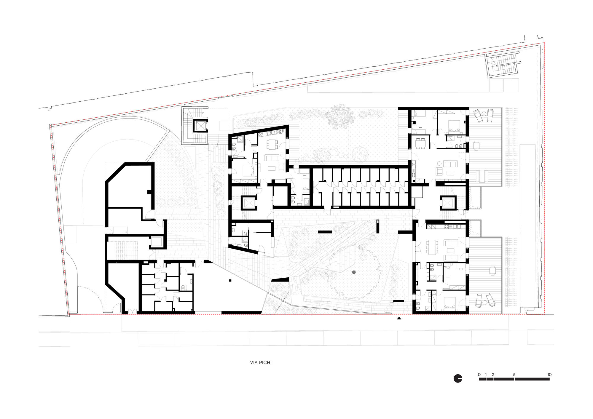 Pichi 12 Housing, Originally designed for residential use by students and young professionals linked to the nearby university centers – Naba and Bocconi –, the Pichi 12 project has developed into its final form as the residence for a more widespread use characterized by an architectural mark that, far from laying claim to an iconic status, blends within the urban fabric of the area near the Navigli in Milan.