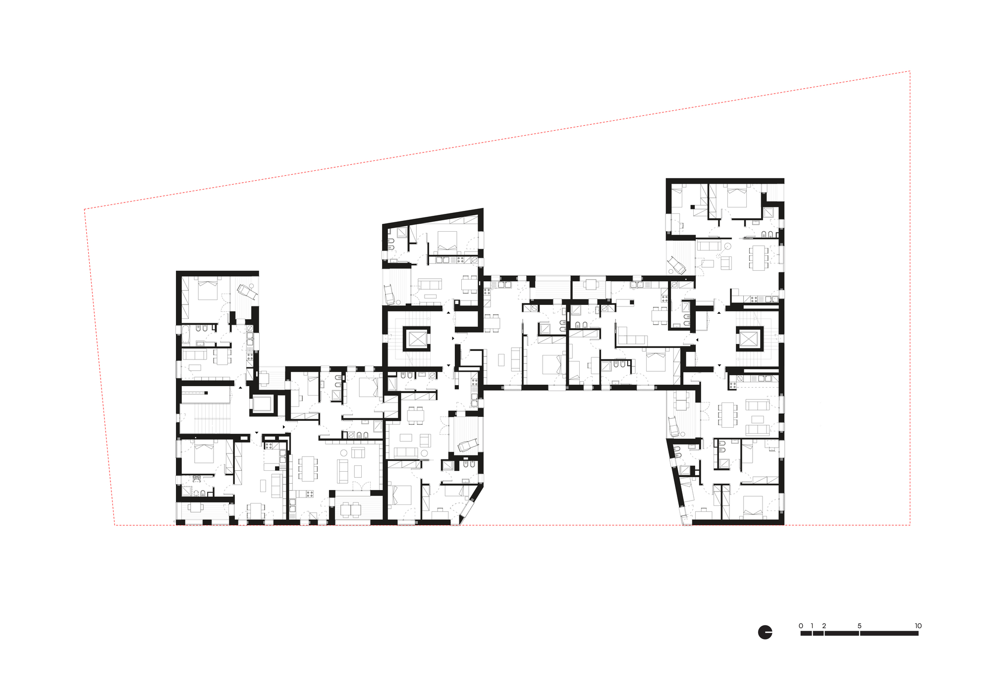 The building is spread over three floors, with the ground floor reserved for communal activities and socializing. The flats, of different layouts and sizes, are all designed to accommodate a diverse community and guarantee a good quality of living. The dry construction techniques that were studied for the building entailed the use of materials – such as steel – capable of creating both lightness and strength.