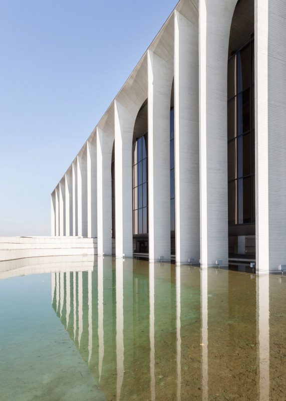 The HQ features the main concrete structure with its colonnades, which are mirrored by the nearby pond. Niemeyer’s design used different spans for every arch which gave the colonnade a new dimension resembling a ‘musical rhythm’.