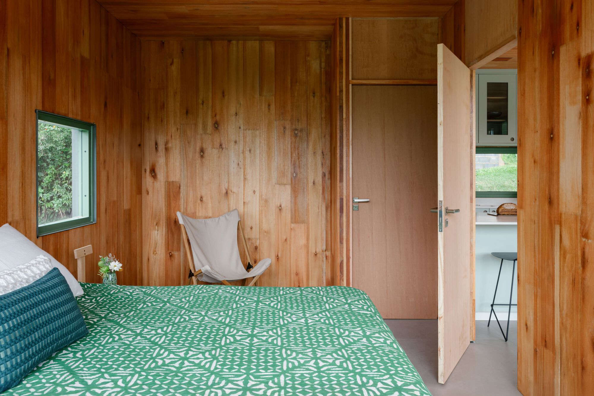 The cross-laminated timber (CLT) construction system was chosen due to the reduced spans and the need for rapid construction. The complete assembly of the house’s structure was completed in less than a week. The use of wood panels as a structural element not only prioritizes construction efficiency but also ensures lower environmental impact, considering that the production of this material, besides retaining greenhouse gases, uses less energy than steel and concrete.