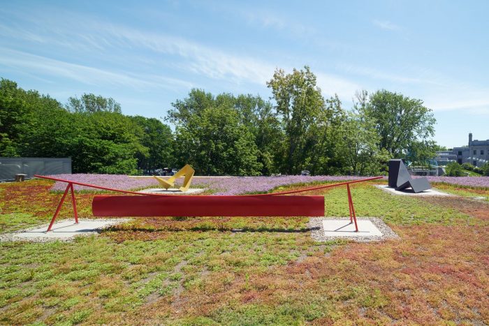 Complementing the quiet reflection of the gallery spaces, a chain of programs along the museum’s edge—foyers, lounges, shops, bridges, gardens—offer a hybrid of activities, art, and public promenades. Along the way, orchestrated views from a monumental spiral stair and an exterior pop out stair reconnect the visitor with the park, the city, and the rest of the museum. Within the boxes, mezzanines and overlooks link the temporary and permanent exhibition spaces. On top of each of the gallery boxes, roof terraces provide space for outdoor displays and activities.