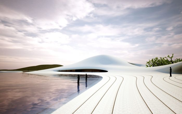 This new city, which is still under planning, will hold the museum at its center. The museum itself acts as a smaller scale island off the Pingtan Island itself, connected to land only by a slightly undulating pier, which, in turn, bridges artificial and natural, city and culture, as well as history and future. The museum represents a long-lasting earths cape in water and is a symbol of the island in ancient times, with each island containing a mountain beneath it.