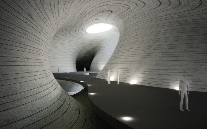 For others, the path of ambulation is intermingled with the smooth curvature of the cast concrete shell. Here, the space has a natural, cave-like atmosphere, with light casting long through skylights above. These are, of course impressions taken from renderings. If they are to be translated directly when the museum is built, it will not only be one of the largest museums in Asia, it will be- in this author’s opinion- one of the most interesting architecturally and worth visiting. Below, a project description provided by the architects tells more of the project.
