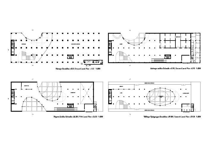 The new Antiquities Museum of Piraeus is conceived through a spatial inversion, this industrial typology is reinvented as a cultural destination. Our interest lies not only in the complex program of the museum, but in the site’s unexploited urban potential as a civic link. Transformed into an iconic, world class museum, the building’s openness activates the Cultural Coast District. A system of void spaces introduces a spatial configuration that brings daylight to public areas whilst engaging the surrounding urban context. Selective erasure ensures that treasured qualities of the concrete silo structure will be retained and adapted into the new use. At moments of subtraction, the cartesian grid of the silo building translates into a new contoured geometry expressing the old in a new way.