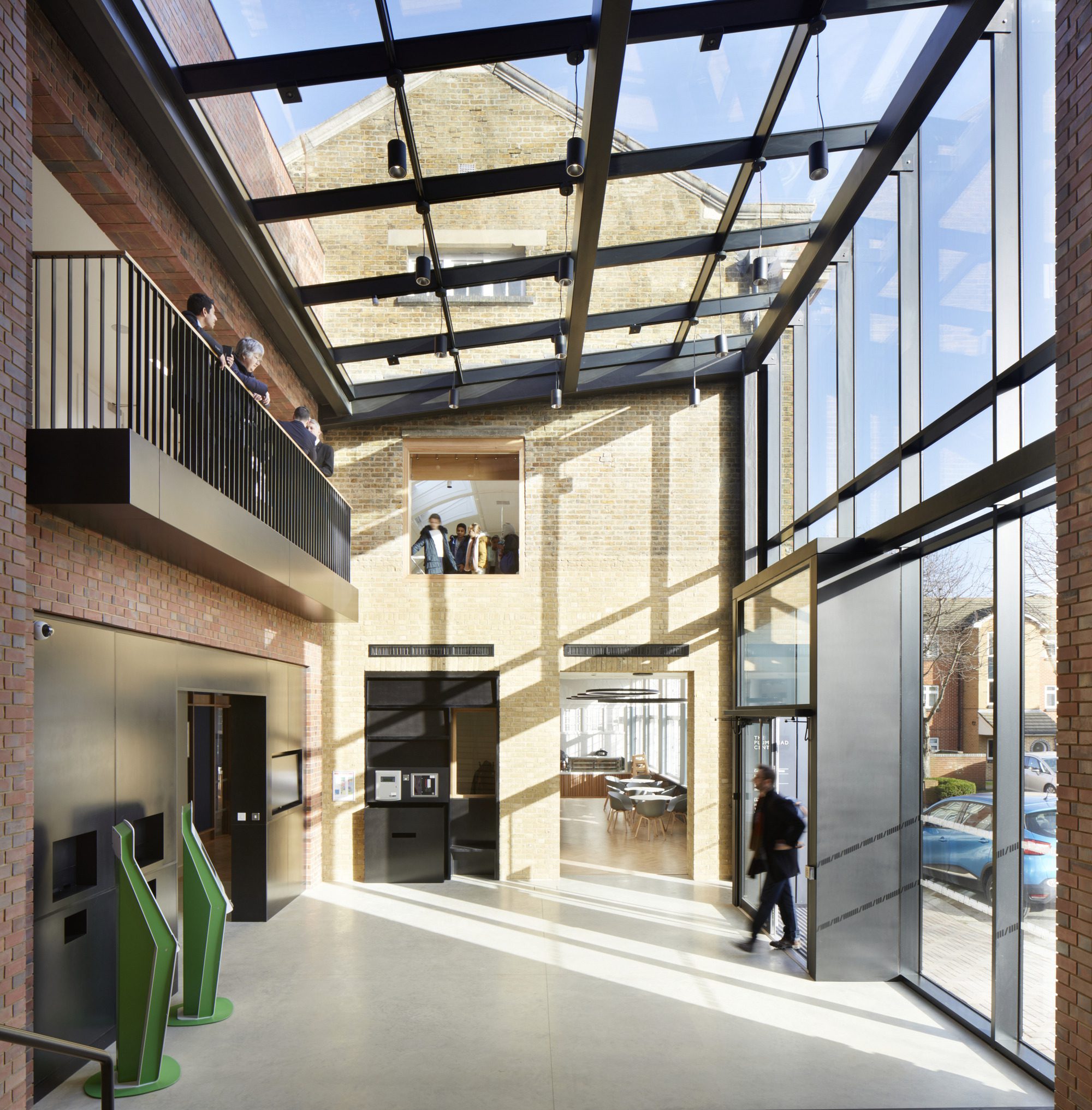 The redevelopment of the Grade II listed Plumstead Library has preserved and enhanced the historic character of the existing library building, refurbishing the interior to bring it in line with modern standards and provide upgraded amenities throughout. A two-storey extension to the rear of the library building provides a home to new leisure facilities. At the threshold between old and new, a full-height glazed ‘box’ creates a new, level-access entrance that leads to an informal social space that emphasizes the building’s function as an open civic centre.