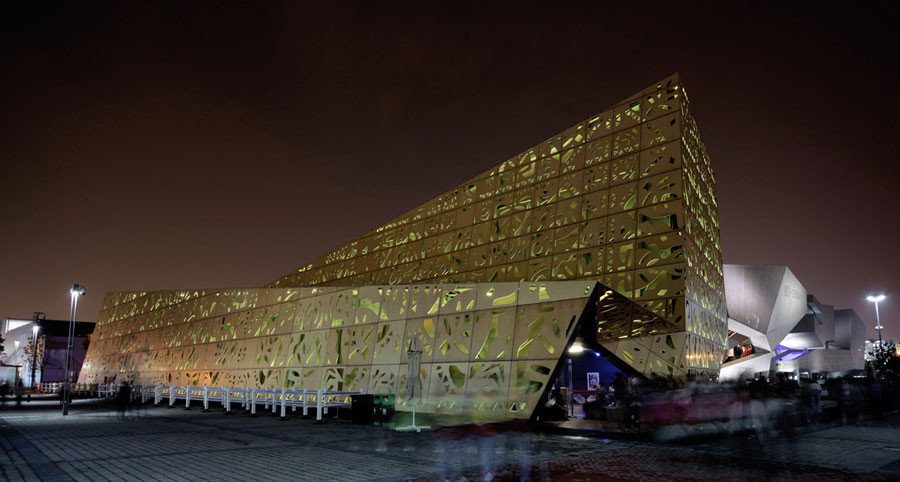 Secondly, we aspired to make the structure in its own right, in a purely architectural dimension, a significant landmark, a showcase of Polish design achievements. That it should be an attractive, eye-catching exterior both in daylight, against the panorama of other Expo facilities, as well as a mesmerizing experience at night with the edifice drawn by the multi-colored light seeping through the cut-out patterns.