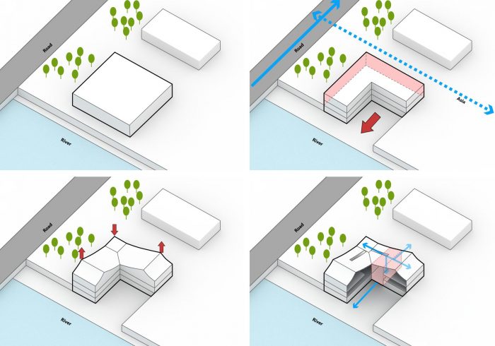 The project base is adjacent to the arterial road in the south side as the gateway of the whole community, with a mountain stream of low water level in the east side, the entrance axis of the whole community in the west side, and a residential group the north side. We have designed corresponding coping modes for different periphery states to establish the final architectural form and organized the interior space.
