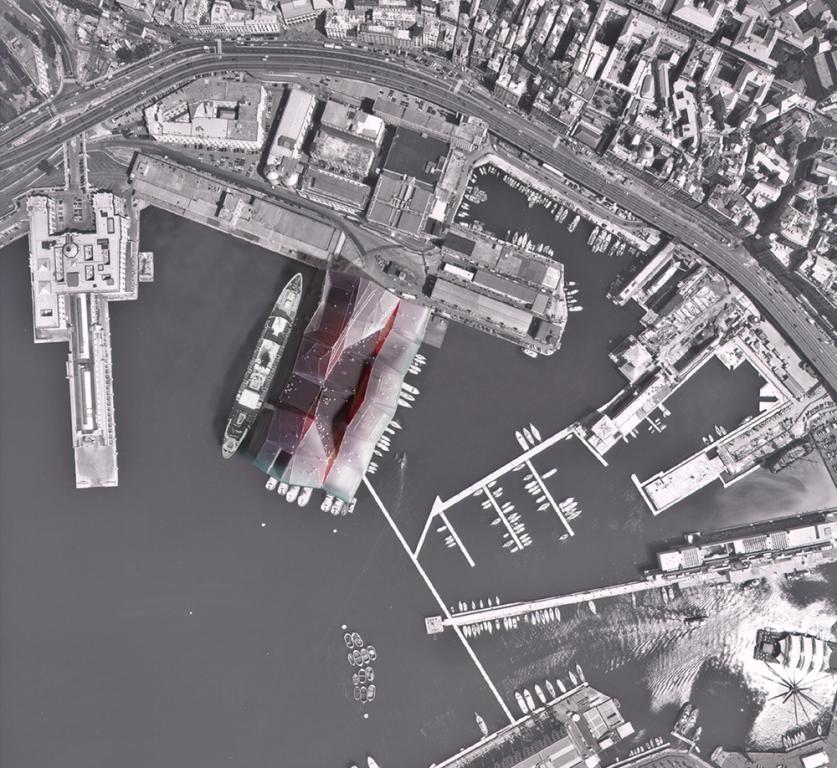 programme: public attractor with a 3-dimensional piazza and mixed use: cruise terminal, wellness experience, knowledge experience, commercial experience, public park with amphitheatre.