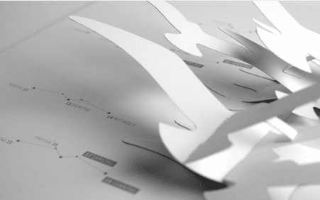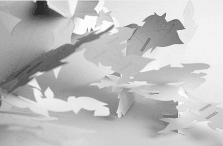 By choosing to use only white to show the forms, Volkmer relies on shading to create depth and detail onto the surface of his pop-up book.