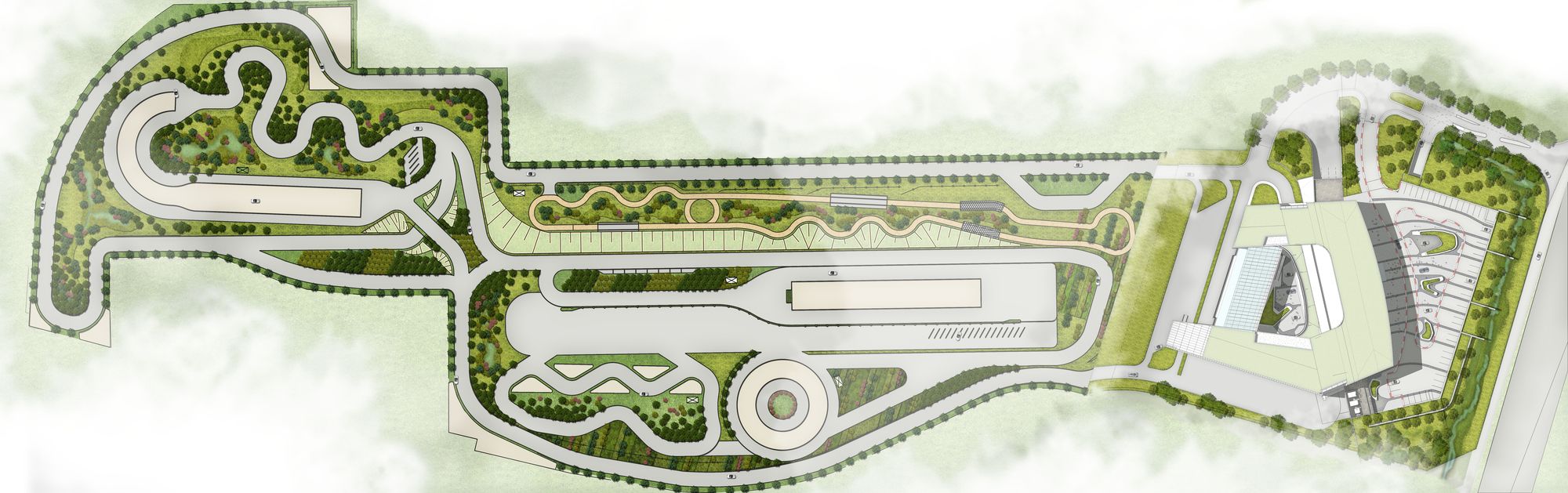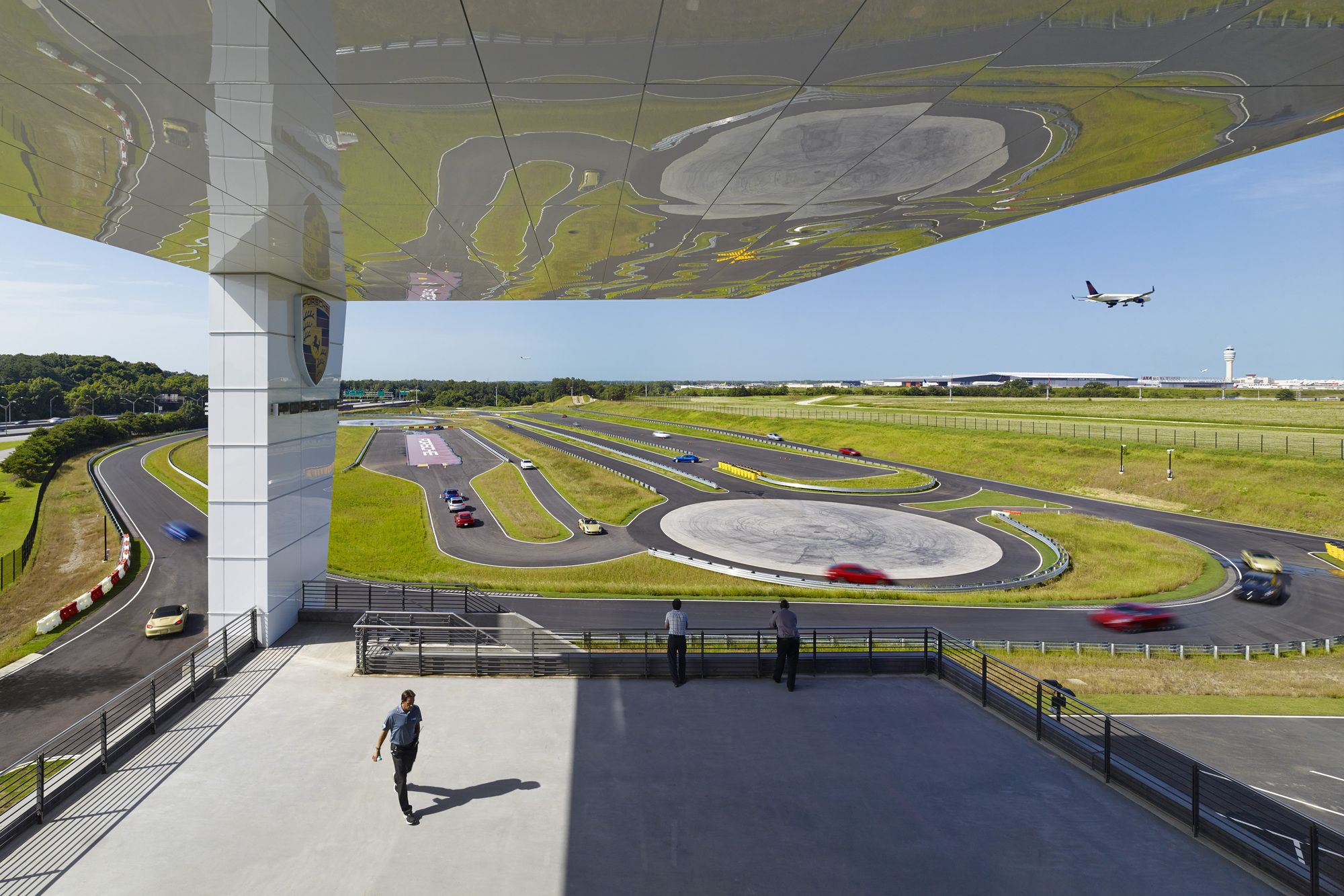 Green solutions, such as natural ventilation, on-site energy generation, planted roofs and gray-water systems will contribute to the Firm’s pursuit of a minimum of LEED Silver for the project. But the importance is not focused only on the exterior, but an equally important part of the design criteria was to bring the Porsche brand and product experience inside the office and meeting environments, hospitality areas, training facilities, even the parking structure. Cafes, team rooms and meeting spaces will also flank the natural light-filled courtyard area. The floors surrounding the courtyard will be lined with floor-to-ceiling windows that open up the interior spaces and blend them with the exterior. In the first for any North American Automative Headquarters, the Porsche site design integrates the track with the building, bringing a whole new definition to ‘rush hour’ – namely that of the adrenaline kind.