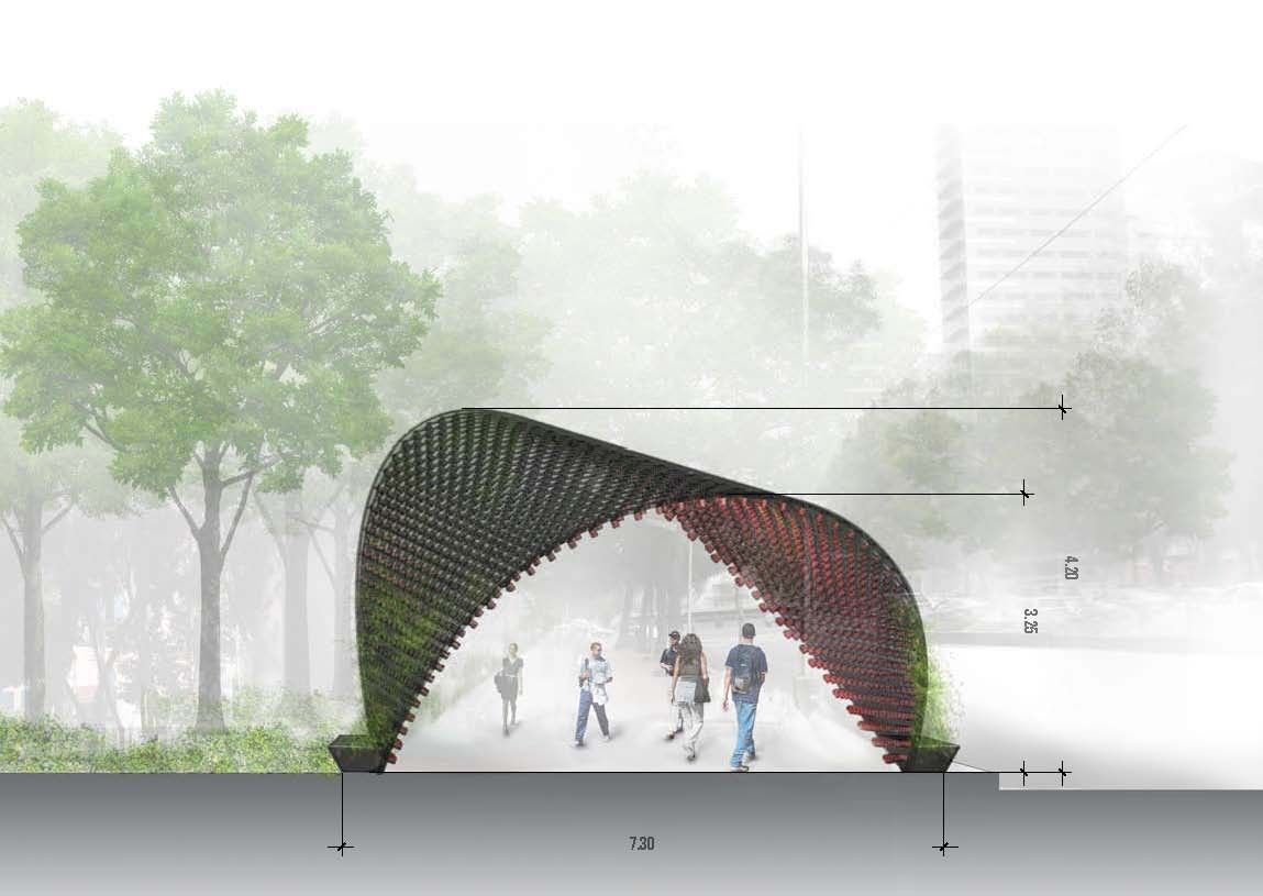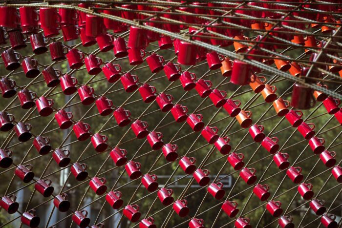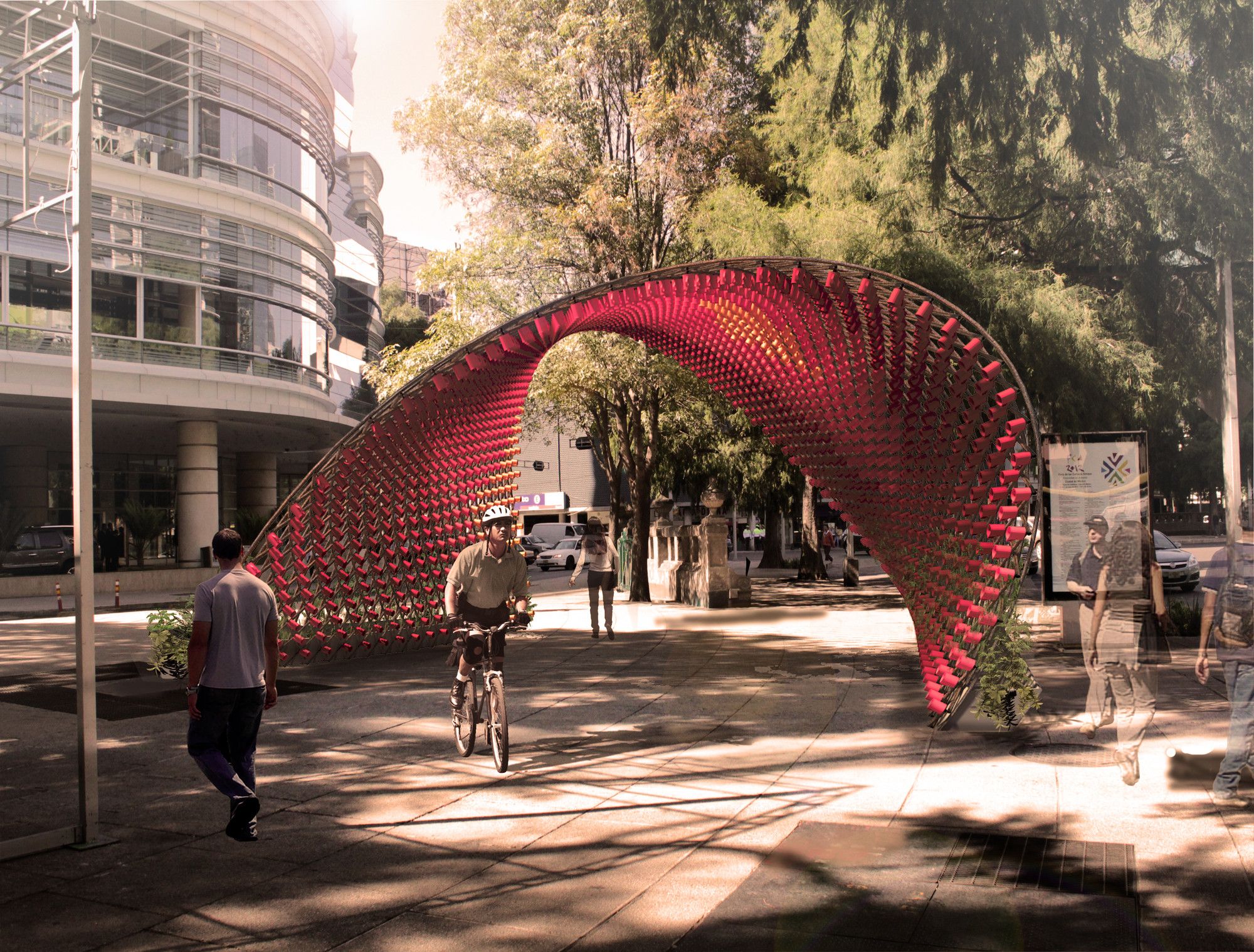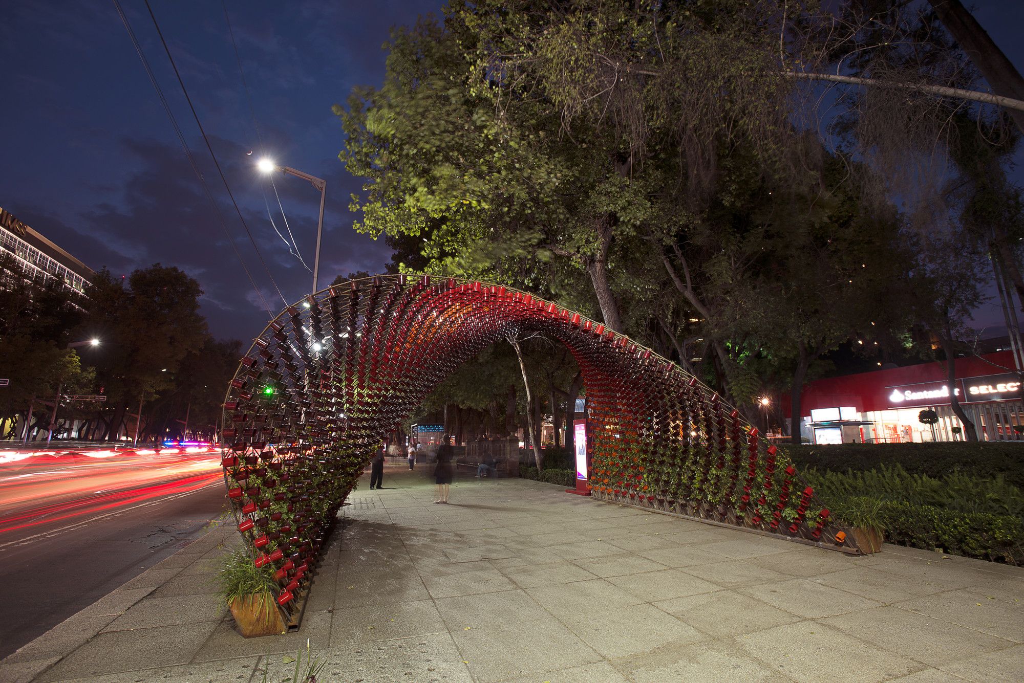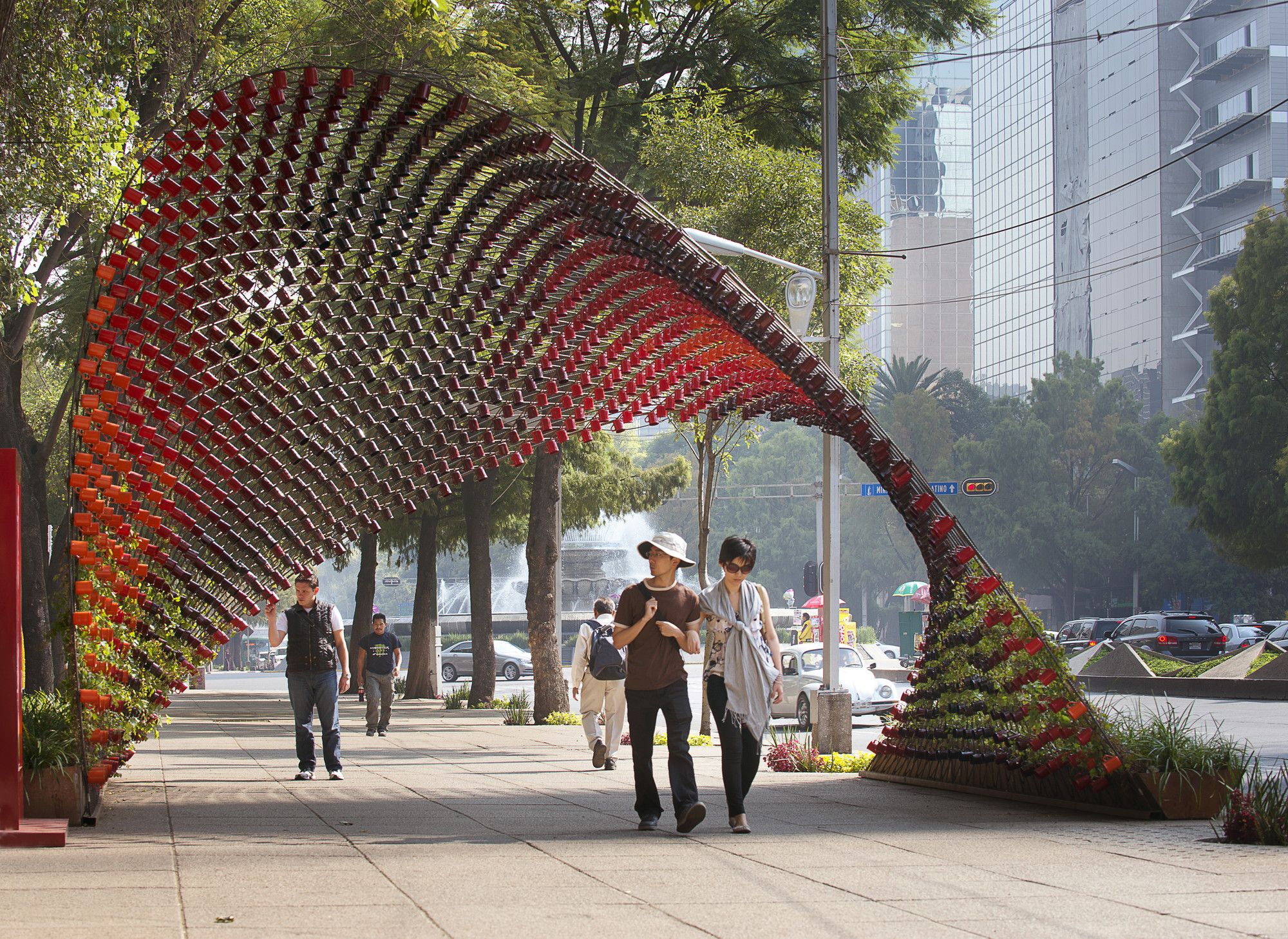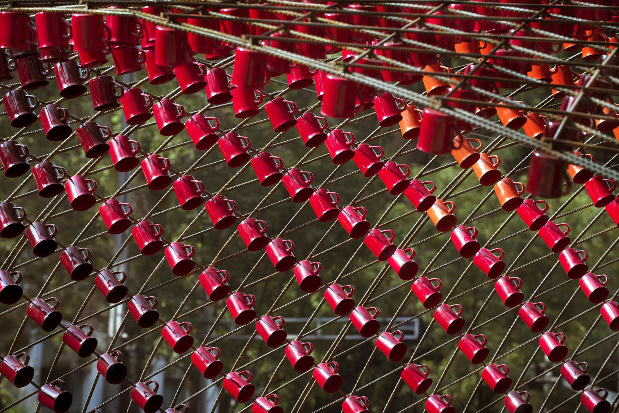 This portal, conceived through spatial design, activated by the city dwellers and the everyday stimuli of Mexico City’s life, becomes a new public piece in one of the city’s most important avenues, Paseo de la Reforma. Nescafé comissioned 8 artists(Francisco Serrano, Mario Schjetnan, Bernardo Gómez-Pimienta, Fernanda Canales, Manuel Cervantes, Alejandro Quintanilla and Alejandro Castro) to develop specific installations with the basic requirement of utilizing a maximum of 1500 metal coffee mugs.