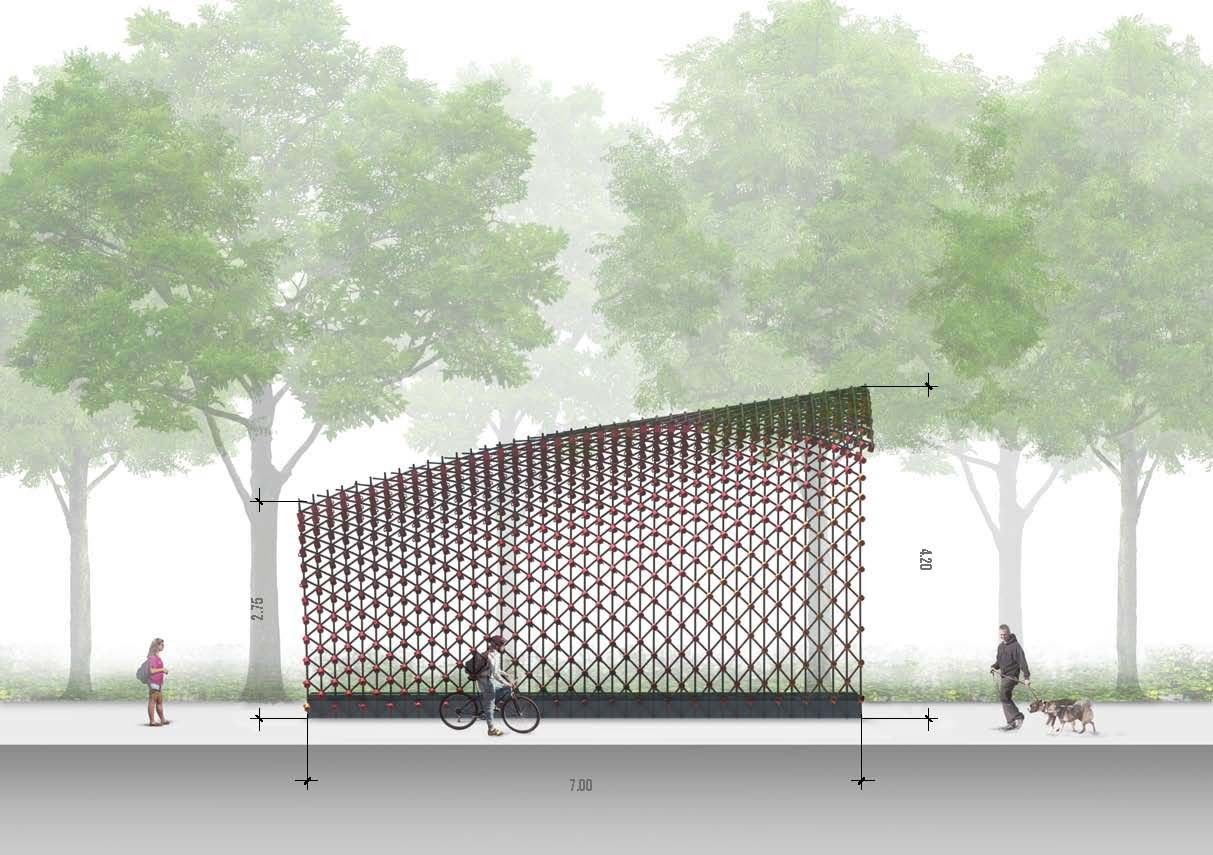 The play of the shadow’s patterns casted on the sidewalk add an extra layer that shifts throughout the day. This installation is intended to be in place during the winter months, providing a space of expression and interaction in the public realm.