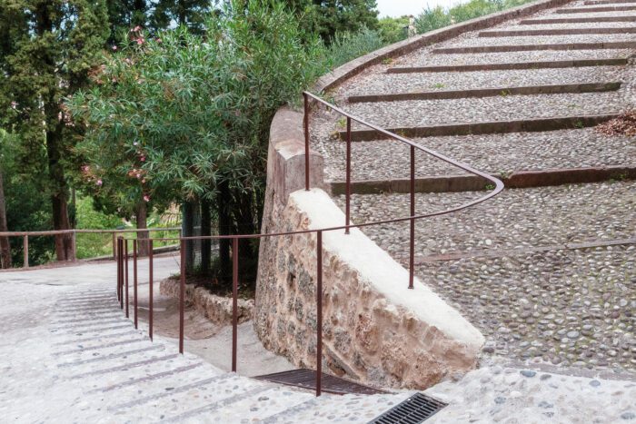 Due to the elevated position of the gate, the site has an extraordinary panoramic point of view facing the system of western Asolo hills and the top of Monte Grappa. In line with the restoration interventions carried out on the walls in recent decades, it was preferred to abandon the romantic image of the historic walls surrounded by vegetation, in favor of a conservative restoration that would improve the perception of the historic building and its relationship with the city.
